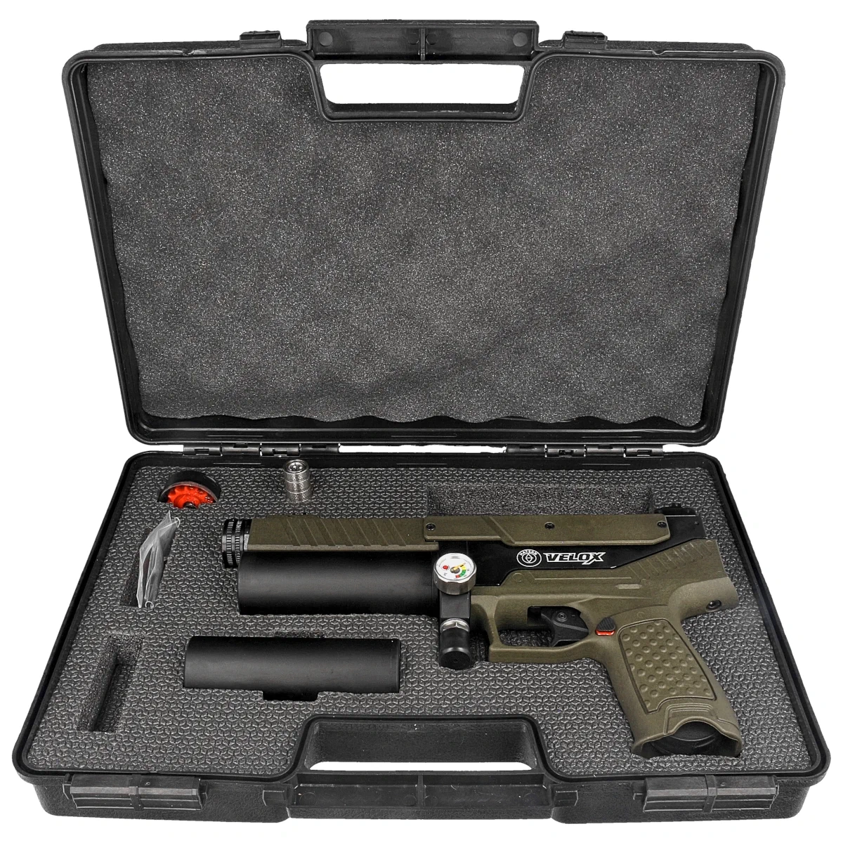 - Velox Olive Drab .22 a semi‑automatic PCP pistol from Hatsan with a semi‑auto reloading system. Ideal for dynamic shooting. Two 50cc air tube, filled to 250 bar, ensure long-lasting shooting. Available in 4.5 mm, 5.5 mm, and 6.35 mm calibers.