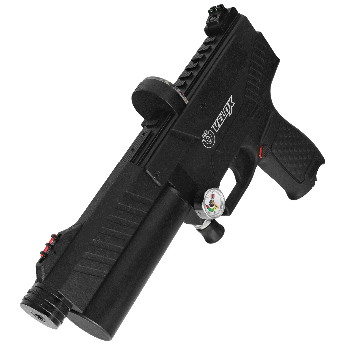 318,97 €Velox Black is the most advanced semi-auto PCP pistol made by Hatsan. Equipped with advanced technologies, it raises the shooting experience to the next level. Its detachable 55 cc air tank and an additional cartridge included ensure long-lasting use. One of the standout features of the Velox is its enhanced trigger system, delivering incredibly precise, smooth, and soft firing with each shot.