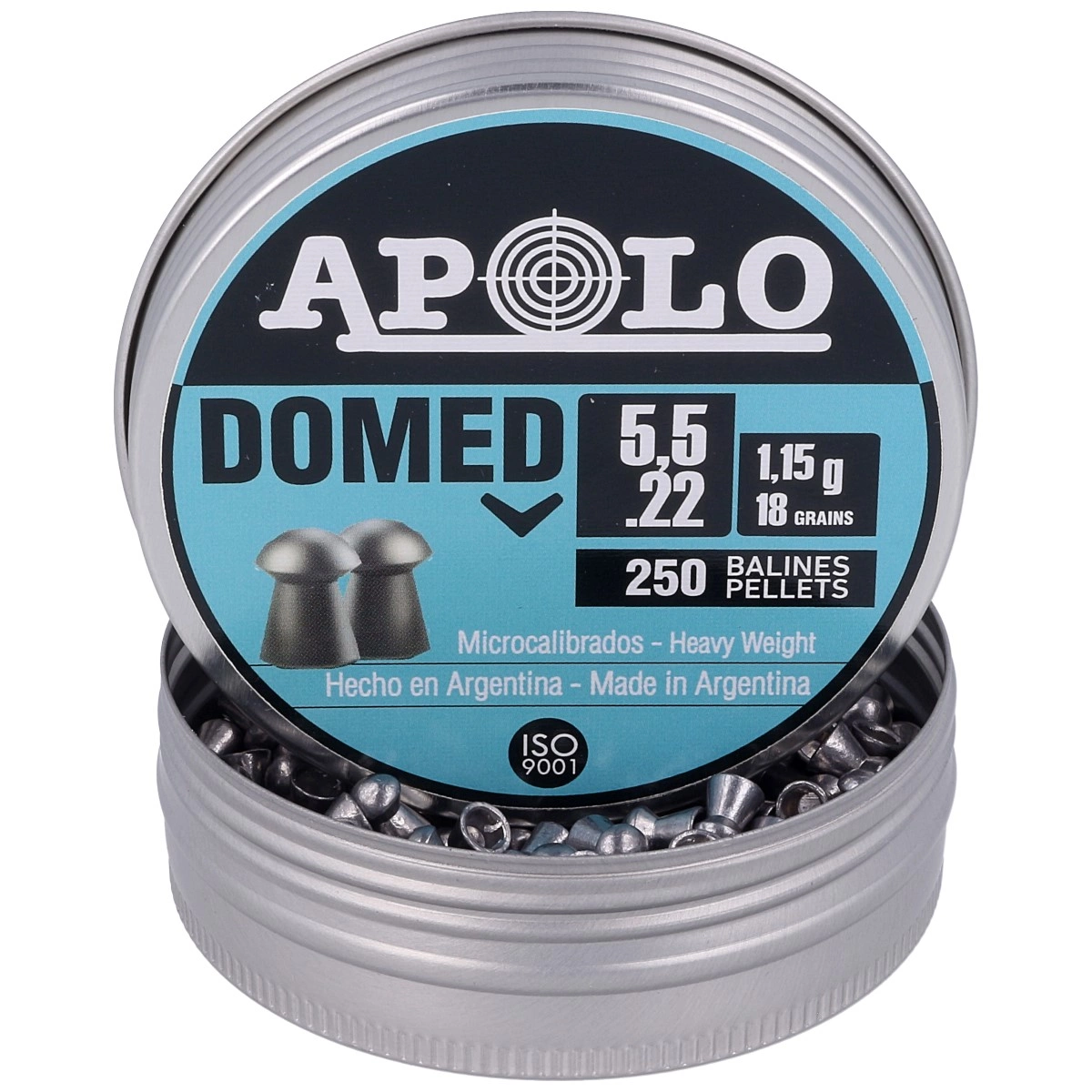 - Domed .22 heavy over-caliber pellets in 5.51mm caliber for long-distance shooting, offering excellent aerodynamics (flat, stable trajectory) and energy retention. The rounded profile ensures high impact force and penetration. Pack of 250 pcs.