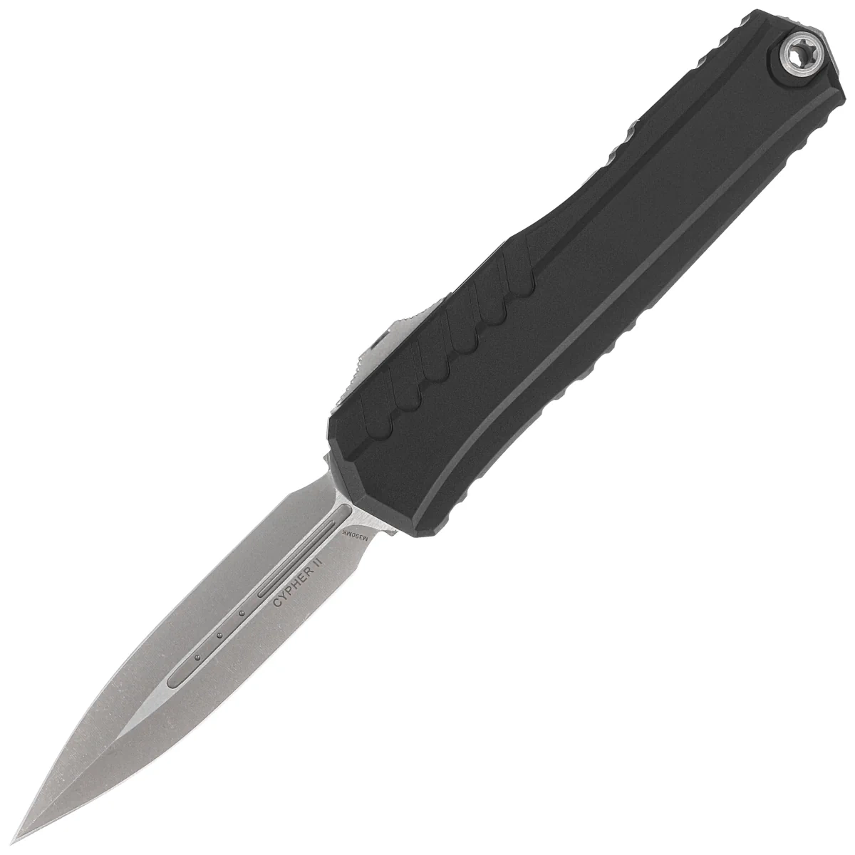 Microtech Cypher II D/E OTF Knife Black Aluminum, Apocalyptic M390MK by Deryk Munroe and Tony Marfione (1242-10AP)