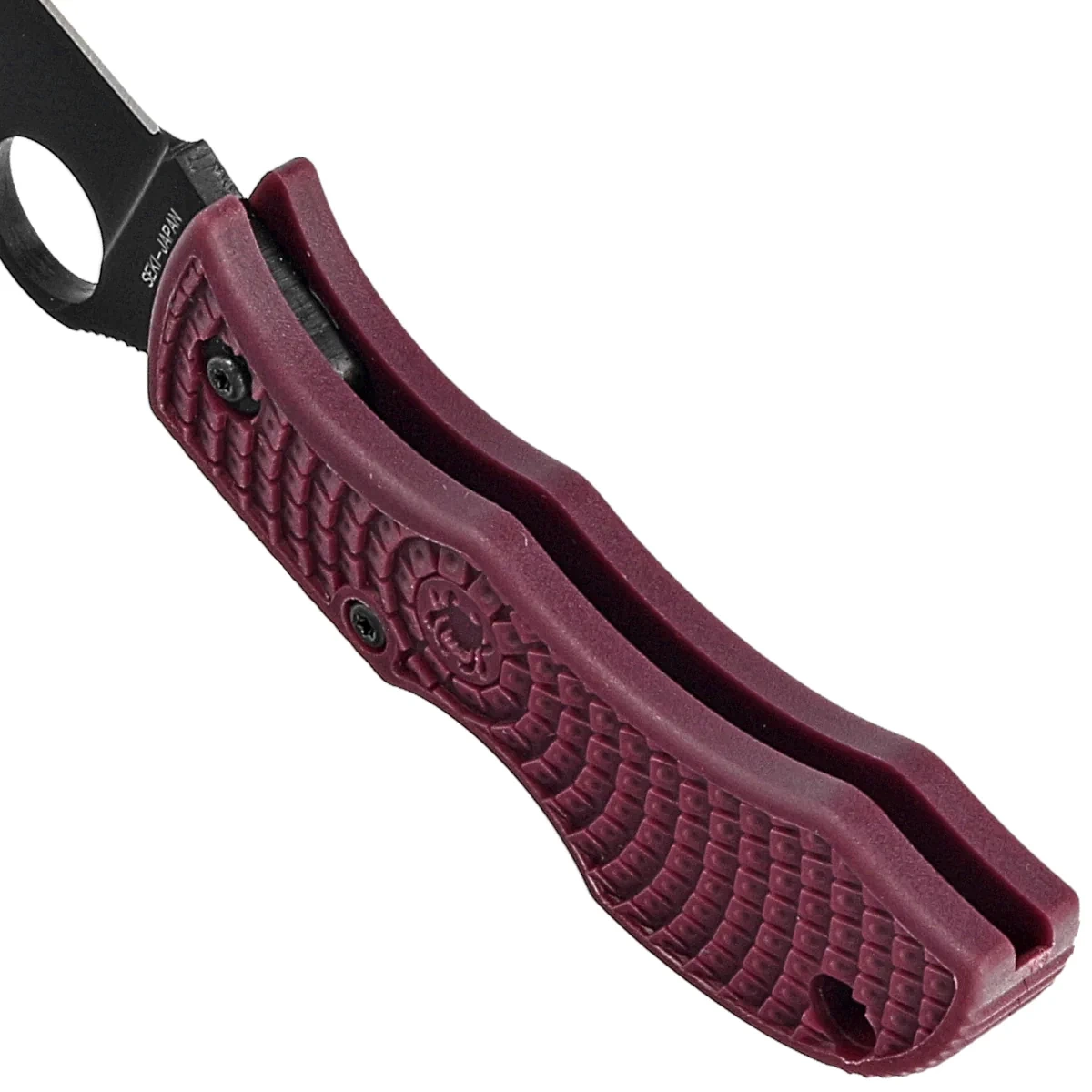 Blade - with a modified Leaf profile modeled after the shape of a bamboo leaf. Plain blade was derived with a Full Flat Grind. This grind reduced the weight of the knife and improved the cutting properties. Satin (semi-matte) finish eliminates glare. The SpyderHole round cutout (Spyderco patent) allows the knife to be opened with the thumb. Robust Back-Lock with additional Boye Detent cutout to prevent accidental release of the lock when gripping the knife firmly. Notched thumb ramp.