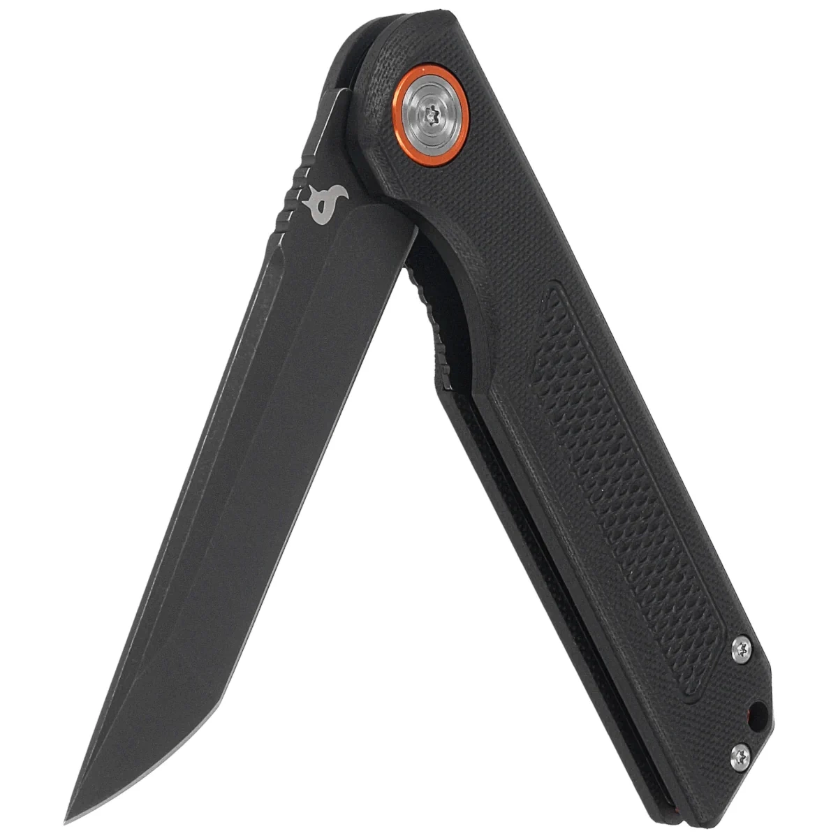 Momentum Black G10, PTFE Stonewashed, is the latest design from BlackFox's sub-brand. Featuring a Tanto blade made of D2 steel and textured G10 composite handle scales, the knife offers exceptional ease of use for everyday carry (EDC). Flipper for opening and the Liner-Lock mechanism for unlocking the blade ensure intuitive handling. This is a standout example of a compact EDC knife, making it an excellent choice for anyone seeking a reliable tool for daily tasks.