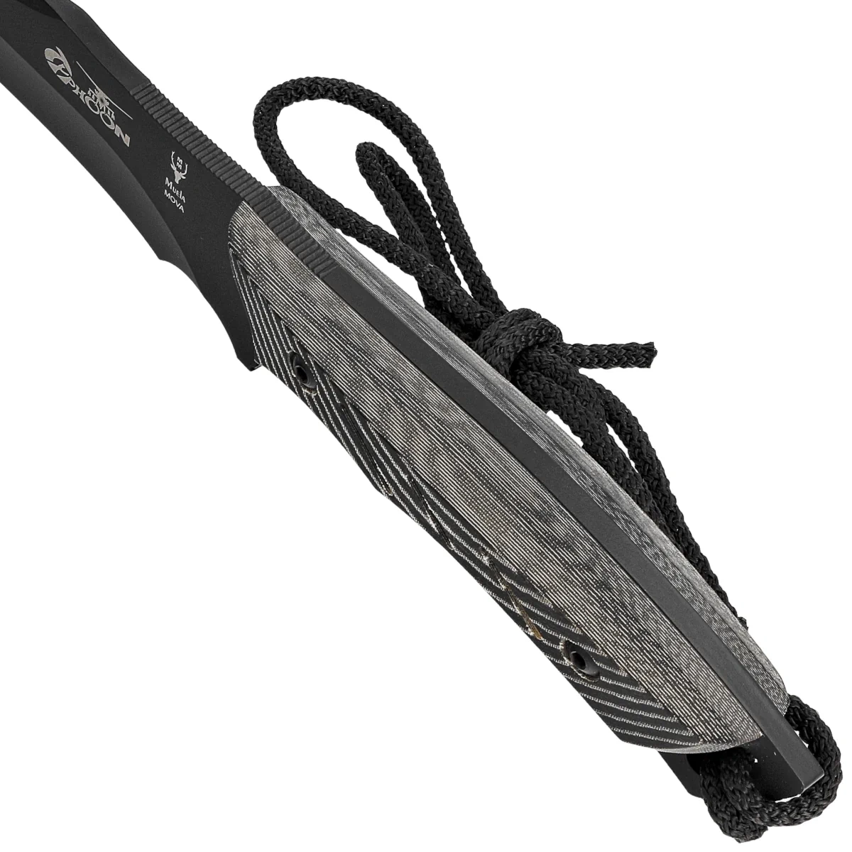 - Typhoon-15N Black Micarta, Black versatile fixed blade knife from Muela with full tang construction in X50CrMoV15 steel. Molded micarta grips bolted with torx screws, thumb ramp. Ruggedly durable will endure work in all conditions.
