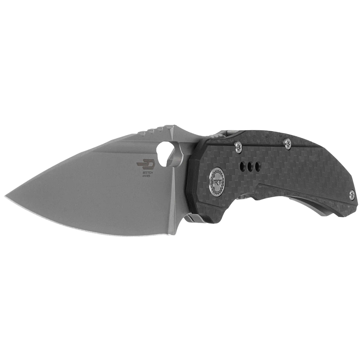 Exploit Grey Titanium/Carbon Fiber, Stonewashed, one of Bestech's flagship knives designed by Todd Knife and Tool. An extremely sturdy, compact folder that will perform well in both EDC applications and heavier field work!