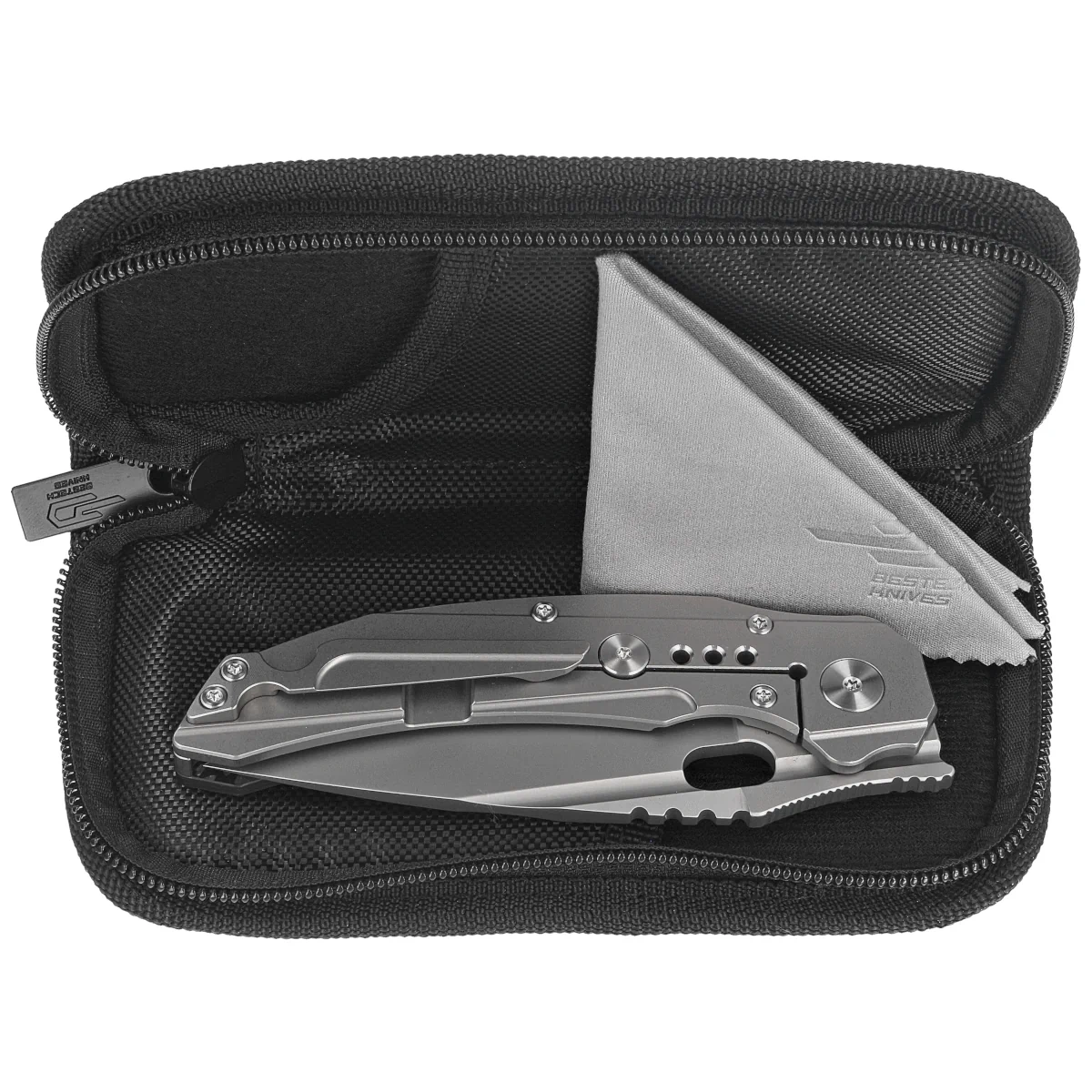 Case - the knife is packaged in a zippered nylon soft pouch with the brand's logo for safe carrying and storage of the folder.