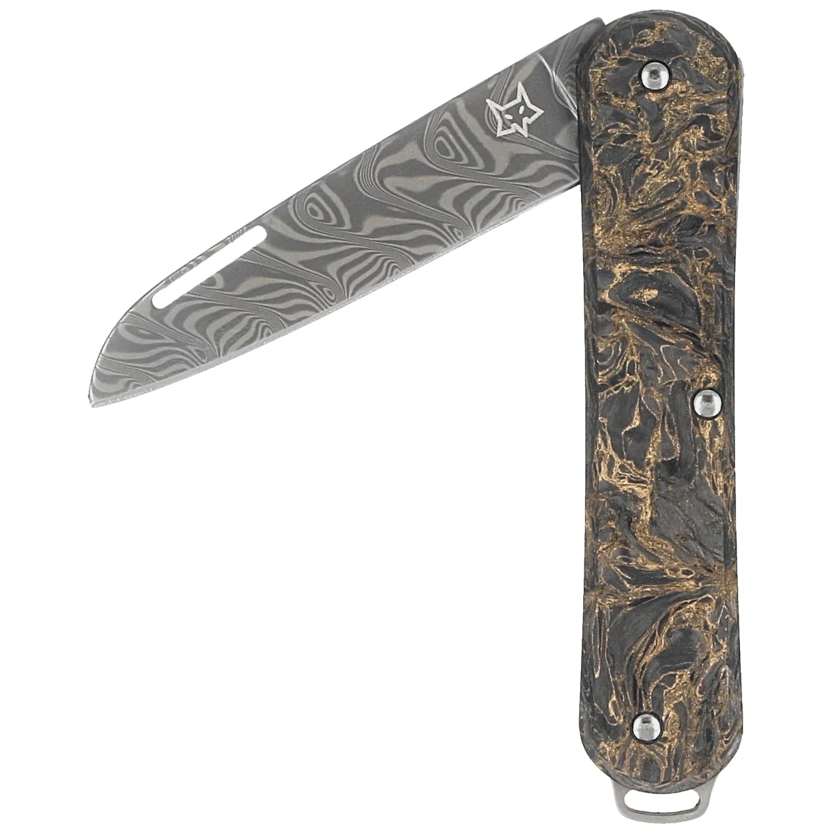 Fox Vulpis 130 LE No 147/250 Dark Matter Fat Carbon, Super Clean Damascus by Balbach Damast Pocket Knife (FX-VPDAM130 DMGO)