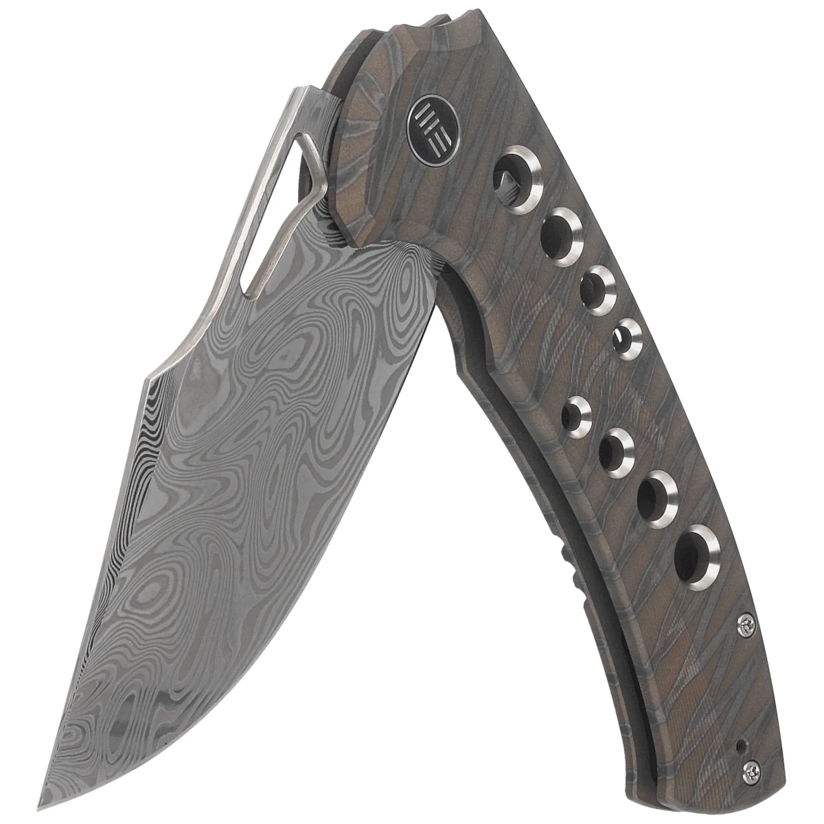Swiftfin Tiger Stripe Titanium, Damascus, is an exclusive version of an exceptional EDC folding knife, a perfect combination of elegance and functionality, produced by the renowned WeKnife manufactory. Blade type Modified Clip Point, made of the highest quality damascus with a unique design. The ergonomic Handle, precision-milled from 6AL4V titanium, provides extraordinary durability and a remarkable appearance that catches the eye. Excellent grip with the whole hand, thanks to the ergonomically designed Handle, which lies perfectly in the hand, providing confidence and comfort during use. Two ways of opening, a flipper and a hole in the Blade allow quick and convenient unfolding of the blade, adapting to the user's preferences. The frame lock mechanism guarantees reliability and safety during use. The use of ceramic bearings in the pivot system ensures smooth and precise operation. Swiftfin is not only a tool, but also an expression of style and class that is sure to please any knife lover.