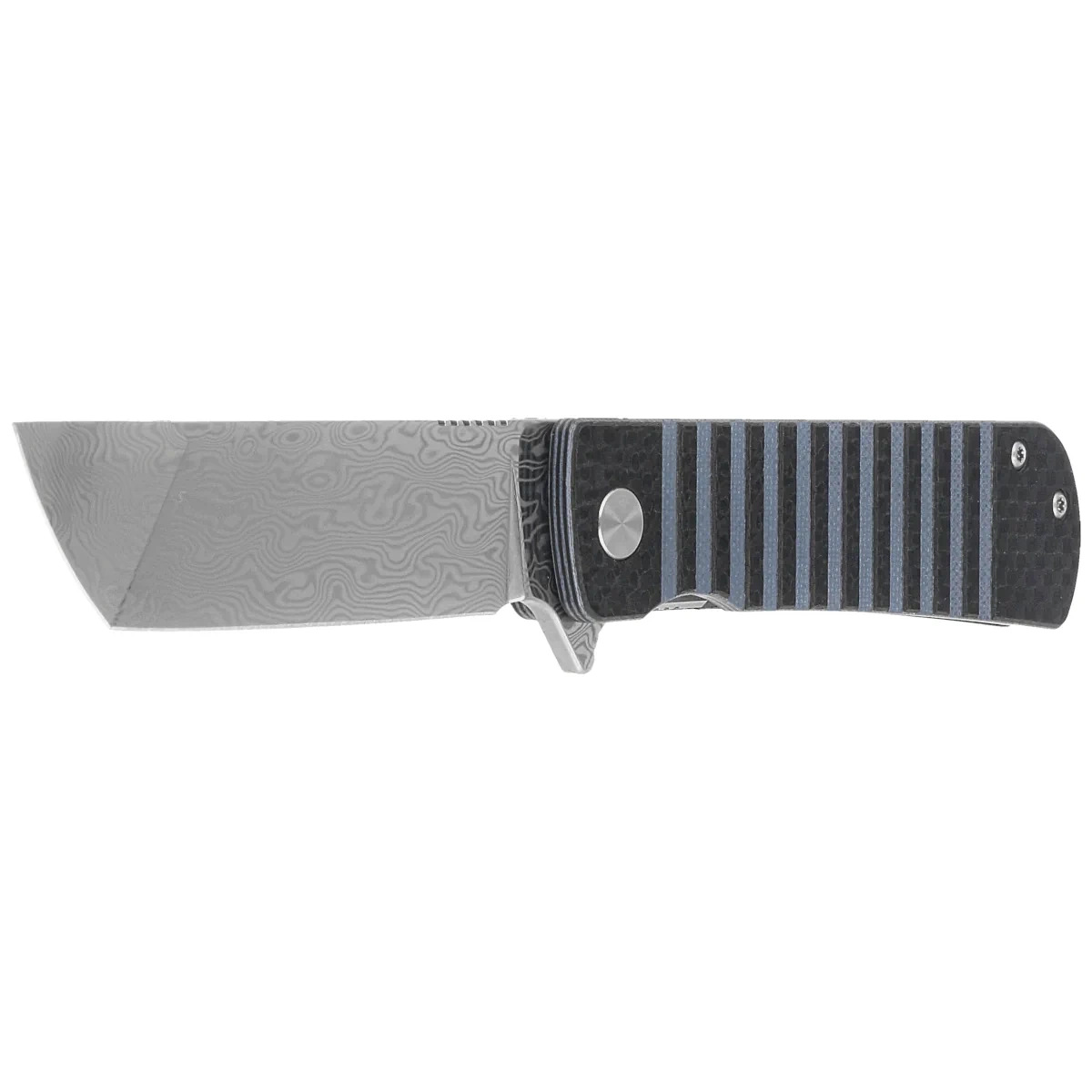 Titan Black Carbon Fiber/Blue G10, Damascus is an EDC folder, the fruit of a collaboration between renowned designer Keanu Alfaro and the Bestech brand. The precision-designed blade, made of damascus with a unique pattern, ensuring not only high resistance, but also long sharpness retention. Its wide, versatile profile is ideal for precision cutting and slicing, making it a reliable companion in everyday challenges. The carbon fiber laminated G10 composite Handle features an ergonomic shape and the textured surface provides a secure grip, minimizing the risk of slipping, even in harsh conditions. The precision of workmanship, evident in every detail, guarantees unparalleled comfort in use. The Titan model perfectly balances aesthetics with practicality, offering a compact size and reliability that will meet the expectations of even the most demanding users.
