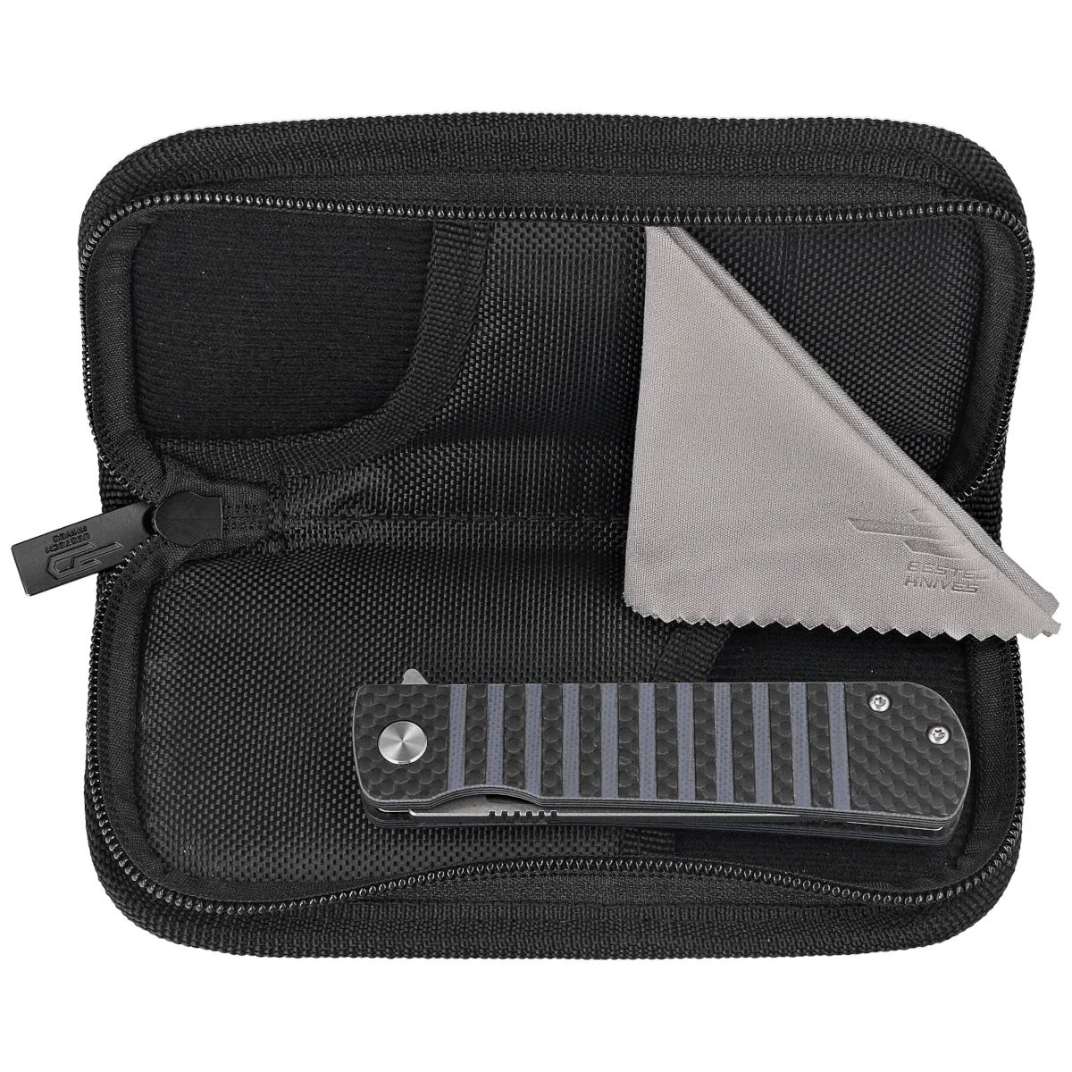 - Titan Black Carbon Fiber/Blue G10, Stonewashed/Satin, a compact EDC folder, the result of a collaboration between designer Keanu Alfaro and Bestech. The wide, versatile blade is perfect for cutting or slicing. Comfortable, ergonomic Handle.