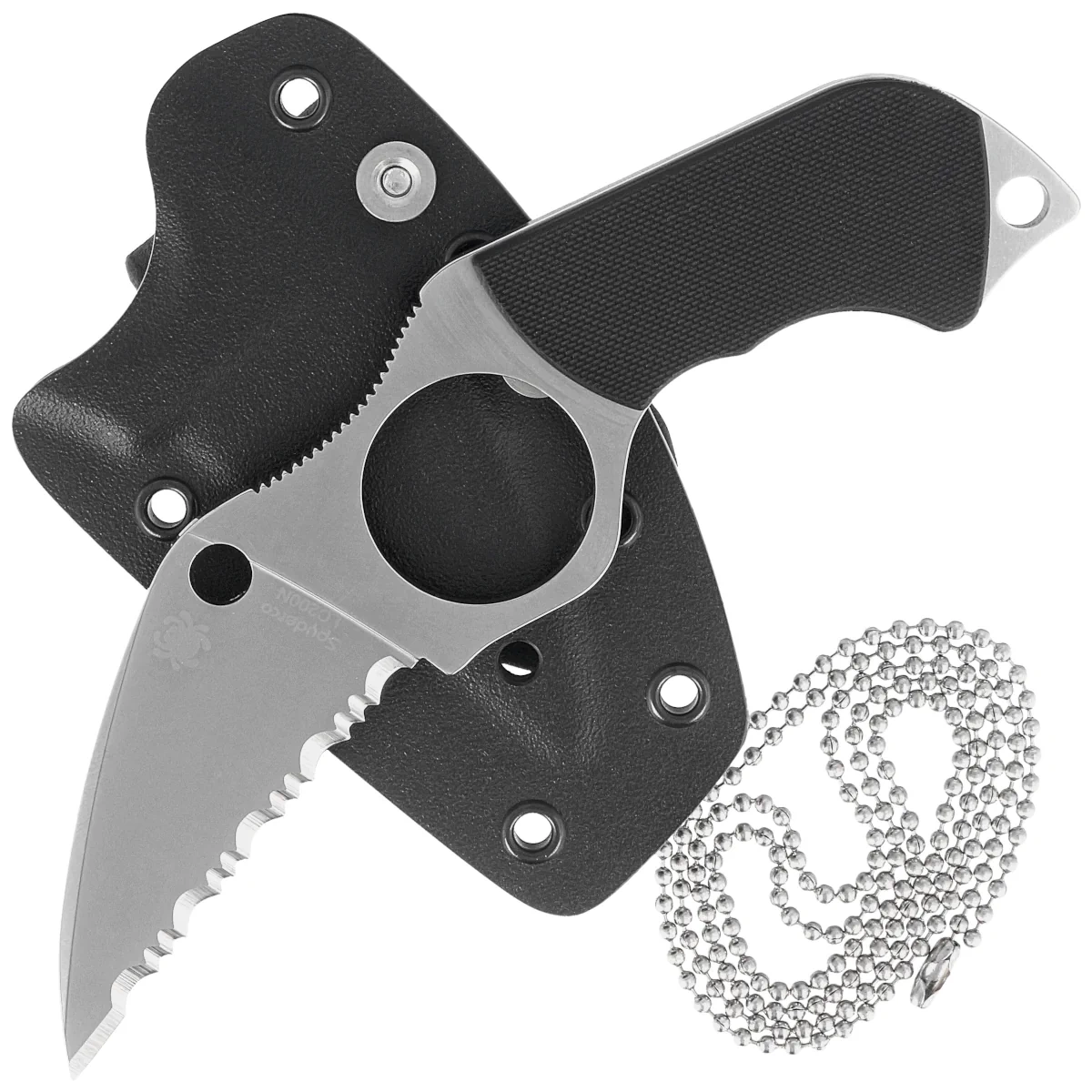 - Swick 5 Large Black G10, Satin Spyderedge neck knife design by Sal Glesser, founder of Spyderco. LC200N stainless steel blade. Ergonomic handle with 26.1 mm finger hole and G10 composite liners. Sheath is made of Boltaron thermoplastic. An excellent tool!