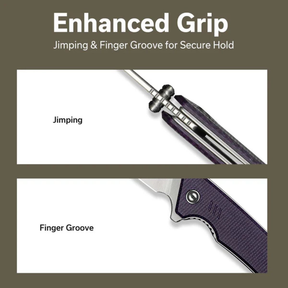 TheMerit Purple Canvas Micarta, Satin is an exceptional EDC folder that combines modern aesthetics with unmatched durability. Its Blade is made of Sandvik 14C28N stainless steel, known for its excellent corrosion resistance and ability to hold sharpness for long periods of time. The durable Canvas Micarta composite Handle offers unparalleled ergonomics. Its textured surface provides a secure grip even in harsh weather conditions, making it safer to use. The slim design makes the knife fit perfectly in a pocket without causing discomfort while carrying. The integrated clip allows secure attachment to clothing or a backpack, providing quick access in any situation. CIVIVI Merit is a tool designed for men who appreciate high quality, practicality and style.