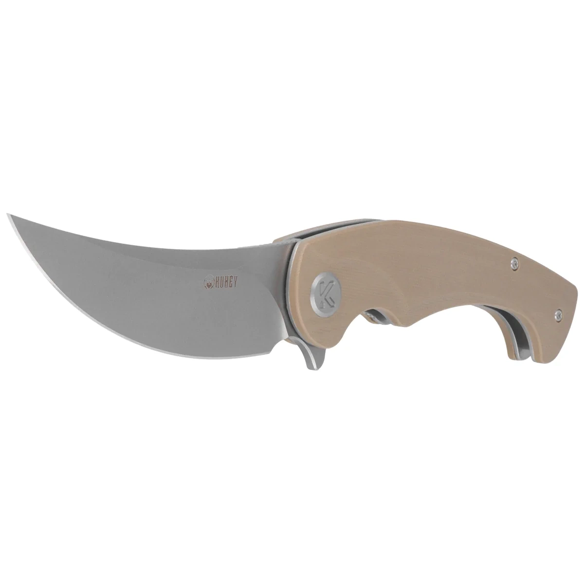 - Scimitar Tan G10, Bead Blasted expressive folder with distinctive Blade made of Sandvik 14C28N steel, Handle made of modern G10 composite. An ideal knife for intensive use. Kubey, durable and functional tools that last for years!