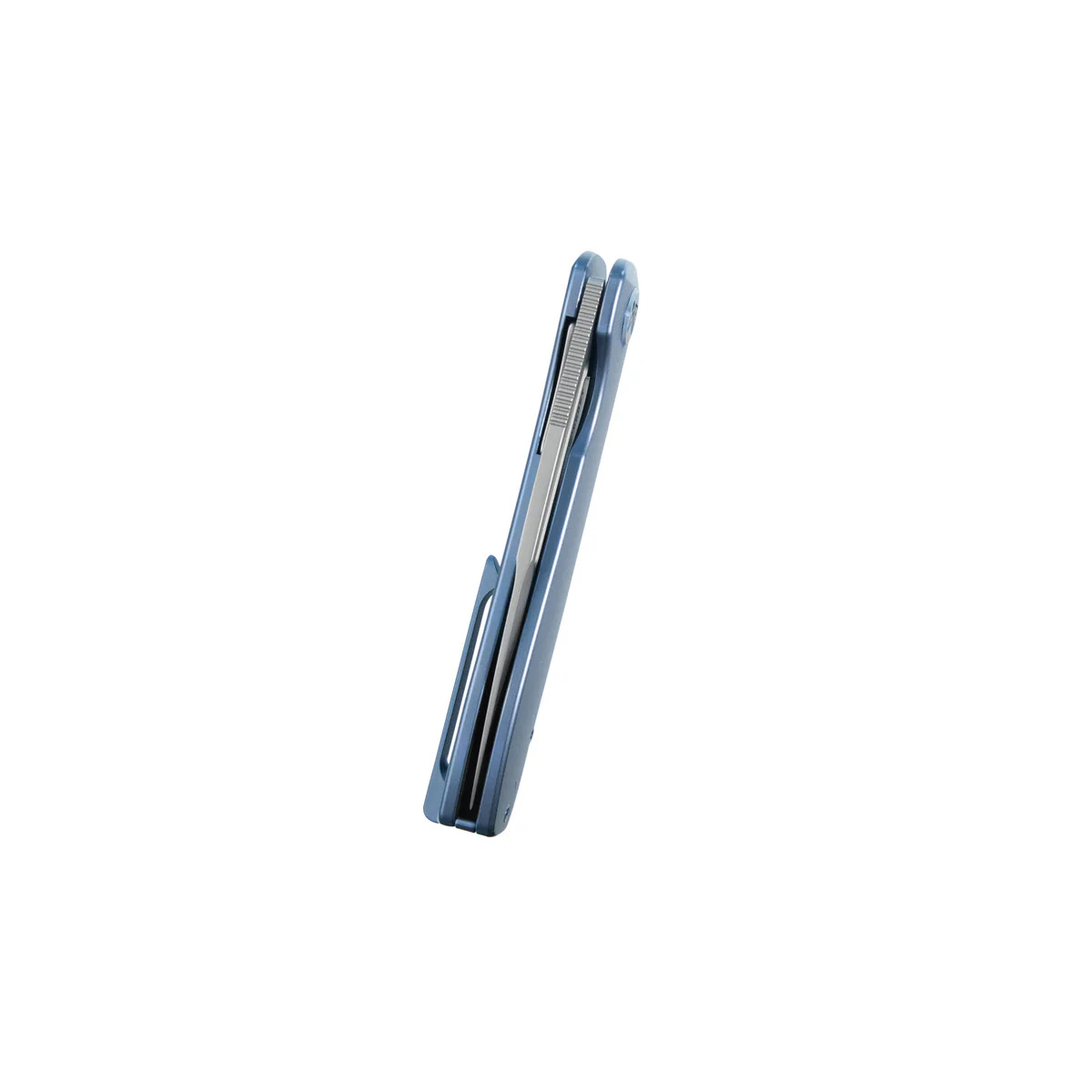 Supercell Blue Titanium, Stonewashed is a robust EDC folder designed by K.C. Spiron. The blade is made of vacuum-hardened and ice-hardened Sandvik 14C28N steel. This ensures high durability and long-lasting sharpness. Handle made of durable, lightweight titanium with a micro-milled texture. It provides a comfortable and stable grip in all conditions. The design offers two independent ways of unfolding: a classic hole and a flipper-type fin. Safe use is guaranteed by the proven liner lock. The knife is suitable for everyday tasks, from precise cutting to more demanding field work. The shape of the tool combines minimalist aesthetics with efficiency. Supercell is a reliable, functional accessory for any demanding user.
