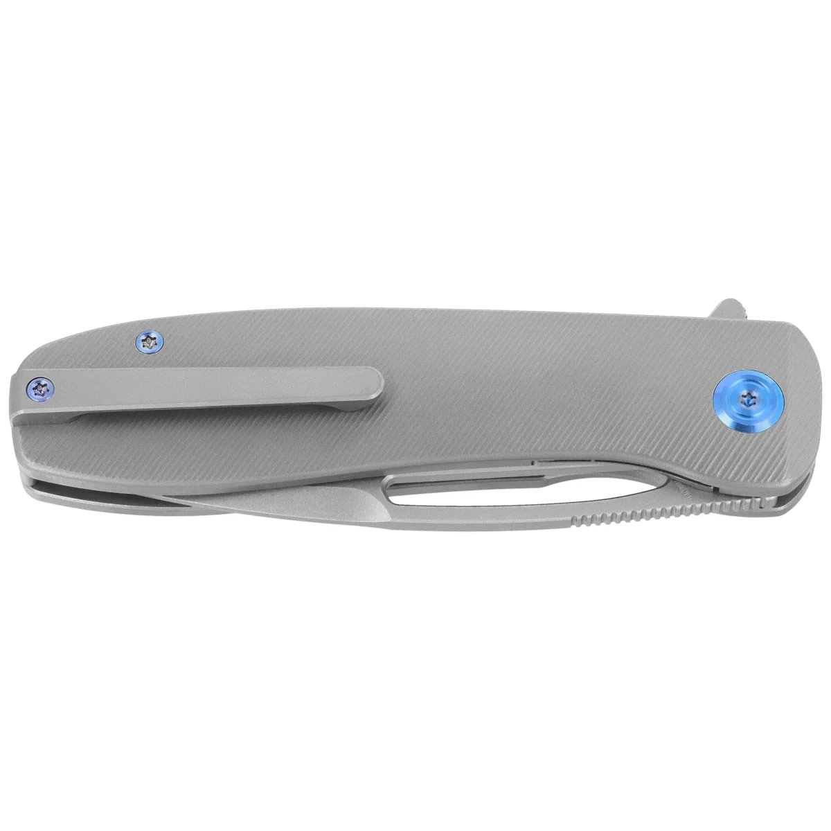 Handle - profiled grips made of titanium 6AL4V, micro-milled with a fine texture. The whole is screwed to a solid backspacer, also made of titanium. The simple, solid construction ensures many years of use. The pivot axis is adorned with a titanium cap (Pivot Cap) in a contrasting color. Two-position (right/left) titanium deep carry clip allows you to carry the knife discreetly in your pocket in a tip-up position (with the tip of the blade up). The forefinger groove improves grip and creates a mini guard to prevent the hand from slipping onto the blade.