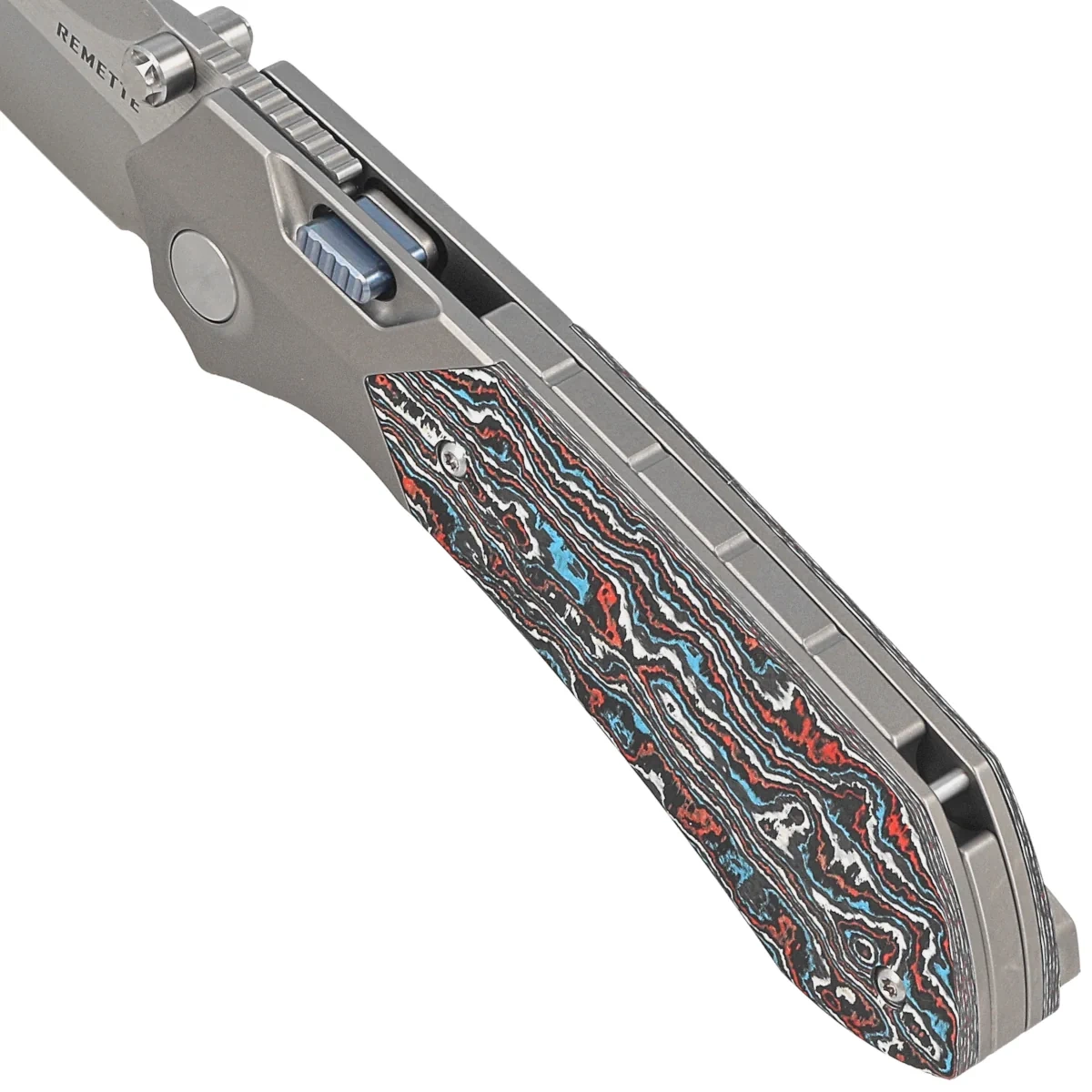 RT-Meteor RTPT-A Titanium/Nebula Carbon Fiber, Pearlescent was created for users who value both excellent workmanship and original design. Premium materials are used in the production process. The blade is made of Böhler M390 powder steel, which is considered one of the best in the knife industry. Its main advantages are high corrosion resistance and long-lasting sharpness. The handle is made of a combination of lightweight yet extremely durable titanium and Nebula Carbon Fiber composite. Thanks to this, the knife not only looks exceptionally elegant, but also ensures a secure grip and precise control during work. Two locks - frame lock and button lock - provide the user with the highest level of safety and comfort of use in all conditions. Each knife is hand-finished, ensuring the unique character of each piece.