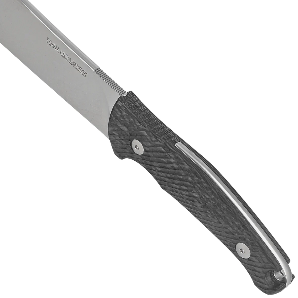 Blade - wide, clip point type with elegant satin finish. The pronounced belly lengthens the cutting edge in relation to the length of the wide blade. The thickness of the blade and flat grinding provide excellent cutting edge geometry and extreme cutting performance. The spine jimping on the back of the blade provides a solid thumb rest, making it easier to handle the knife.