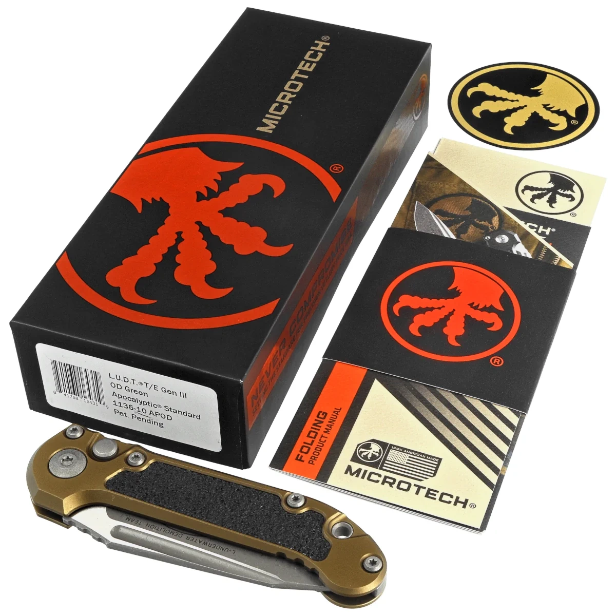 Microtech LUDT Gen III T/E OD Green Aluminum, Apocalyptic M390MK by Tony Marfione (1136-10APOD)