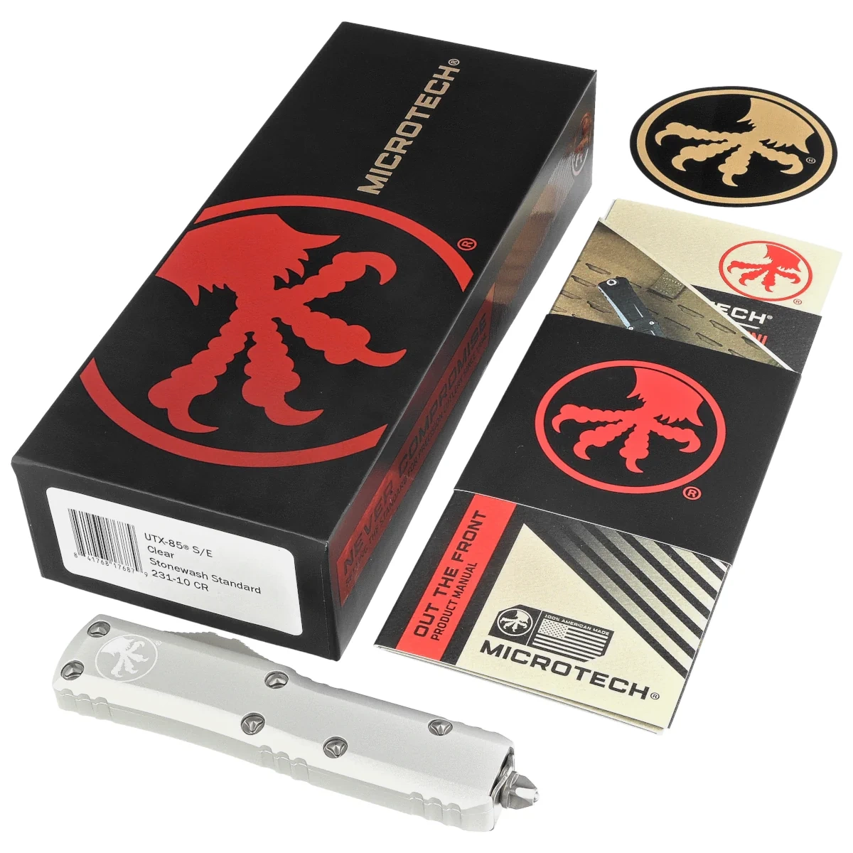 Microtech UTX-85 S/E OTF Knife Natural Clear Aluminium, Stonewashed M390 (231-10 CR)