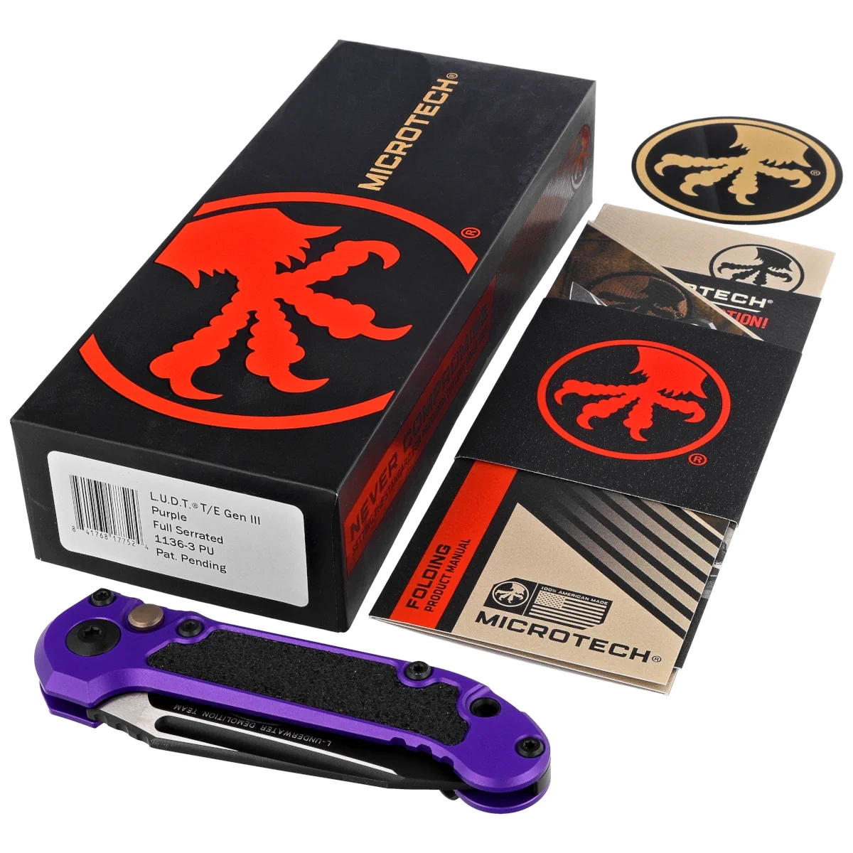 Microtech LUDT Gen III T/E Automatic Knife Purple Aluminum, Black F/S M390MK by Tony Marfione (1136-3PU)