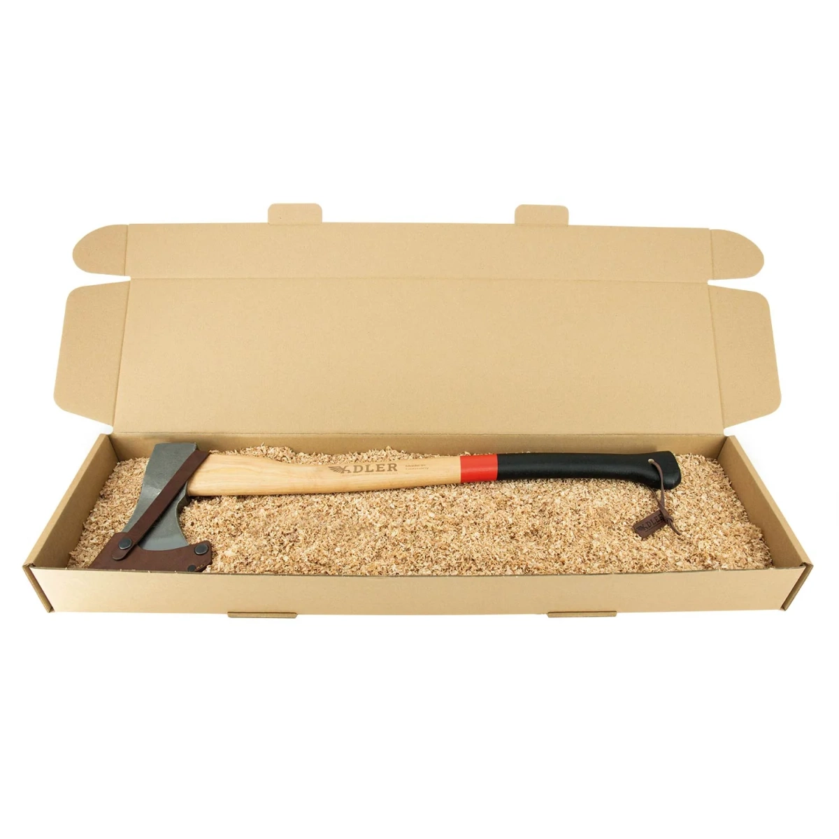 Rheinland Axe Red/Black Hickory Wood, C60 is a classic two-handled axe designed for intensive work in the forest, garden and construction. Made in Germany, in one of the most renowned hand tool forges, it combines modern technological solutions with precision craftsmanship. The head made of hardened carbon steel C60 guarantees exceptional durability and resistance to blunting, even when working with hard wood. Its classic Rheinland type pattern allows for precise blade guidance, which translates into user efficiency and safety. The handle is made of durable hickory wood, ergonomically shaped and mounted to ensure a comfortable grip and dampen vibrations caused by impact. The roughened end of the handle increases safety and precision during use. The whole has been designed to meet the requirements of both professional users and those looking for a reliable tool for home use. Each axe comes in a cardboard box with environmentally friendly wood shavings. The aesthetic finish and solid construction make this axe an excellent choice for those who value quality, tradition and effectiveness.