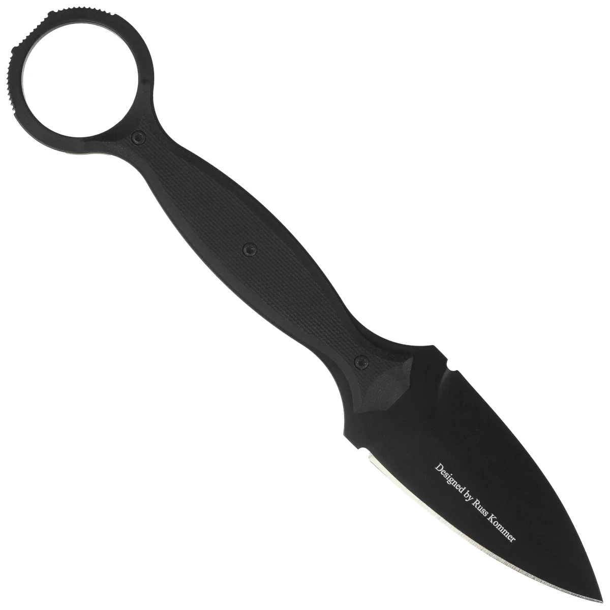 • Neck Knife 922 Black G10, Black, fixed blade neck knife. Designed by Russ Komer for Maserin. Monolithic Böhler N690 steel construction, kydex sheath with Tek-Lok clip for variable positioning.