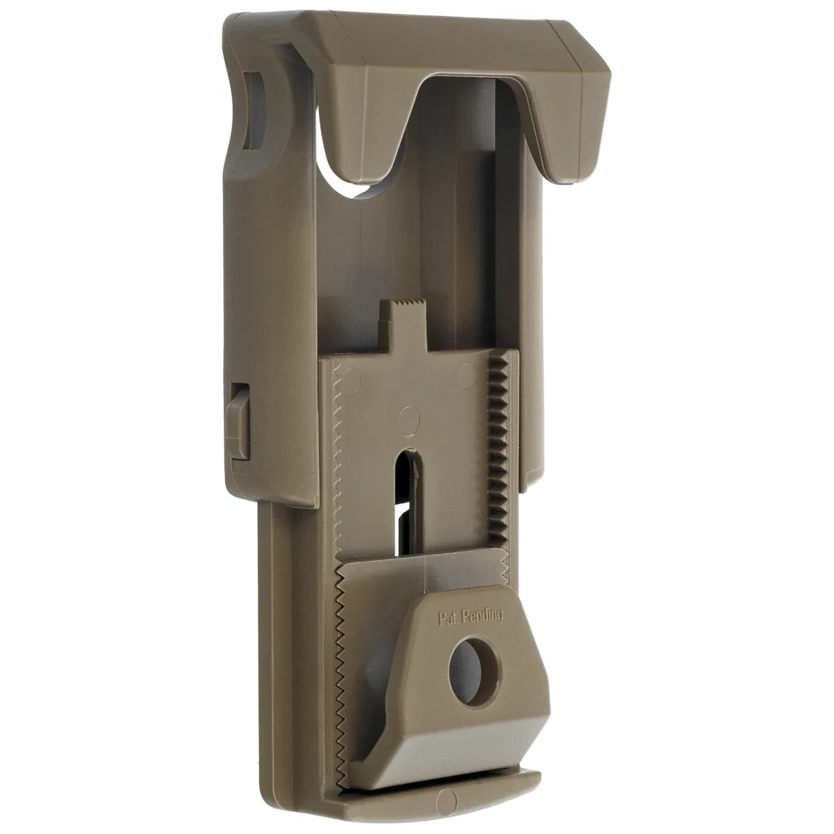 • UBC-01 KH optional rotatable crimped belt carrier. Fastening to ESP pouches / holsters for magazines, telescopic batons, stun guns, torches, pepper gases. Handle for quick attachment / release from the belt. The action can be done with one hand.