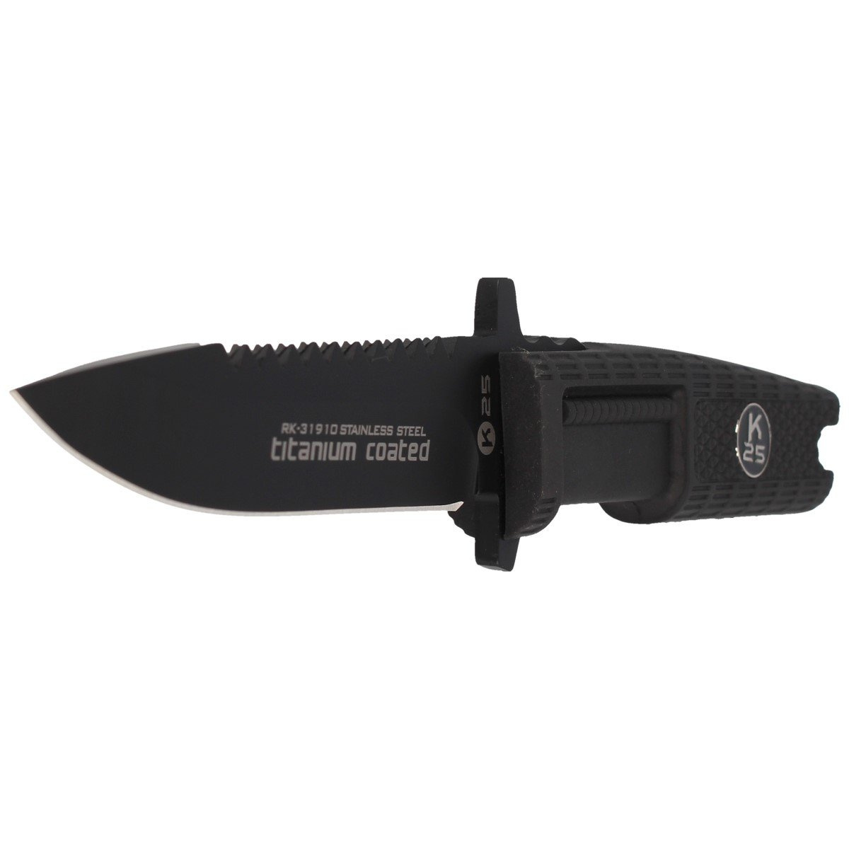 K25 RK-31910 Knife Black Rubber, Black Titanium 7Cr17Mov