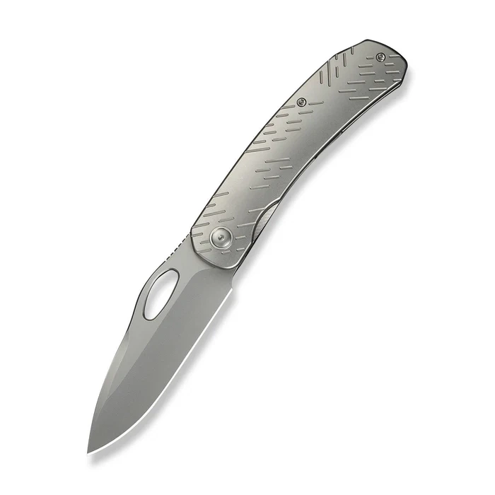 Inmate Gray Titanium, Stonewashed is a modern EDC folder designed by Jerad Neeve, which combines compact form, advanced materials and precision craftsmanship. The slim, lightweight design makes the knife a perfect fit for everyday use, maintaining full functionality and reliability for a wide range of off-road and urban applications. Blade is made of CPM 20CV powder steel , offering excellent abrasion resistance, high edge stability and exceptional corrosion resistance, which translates into long-lasting sharpness and blade durability even under heavy EDC use. The spear point profile combines utility versatility with blade precision for precision and technical everyday tasks. The stonewashed finish gives the blade a rough utility character, effectively masking microscratches and signs of use. The Handle is made of milled titanium 6Al-4V, providing high mechanical resistance, rigidity and lightweight construction. Subtle raindrop milling enhances the ergonomics of the grip and increases the aesthetics of the design. The frame lock stabilizes the blade in the open position, offering complete user safety. The opening system is based on the front flipper and thumb hole, and the precise ceramic bearing guarantees a smooth and fast operation of the blade. The whole is complemented by a titanium deep-carry tip-up clip and an intricate backspacer, creating a cohesive, minimalist premium whole. The WE23096B-1 is for users who appreciate the perfect refinement of mechanics, compact form and functionality of a modern high-end EDC.
