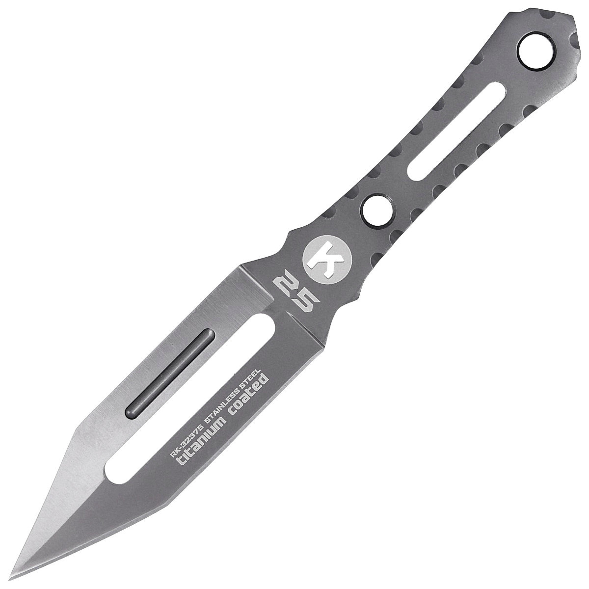 - K25 Thrower Knife Titanium 7Cr17MoV (32375) - a sturdy full-tang throwing knife with a balanced design and titanium coated 7Cr17MoV blade. A precision tool for training and recreational throwing enthusiasts.
