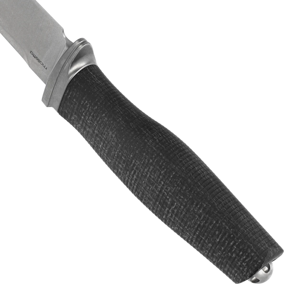 Acha Black Burlap Micarta, Satin is an advanced fixed blade knife designed by Michele “Moletta” Pensato in the spirit of functional minimalism and utility durability. Based on the “Across the Handle” concept, the design is distinguished by its compact construction, modern materials and carefully considered geometry, making it suitable as both an EDC knife and a field tool. Blade is made of Böhler M390 - one of the most advanced powder steels, offering excellent sharpness retention, full corrosion resistance and abrasion resistance, even in harsh conditions. The satin finish emphasizes precision craftsmanship and reduces the visibility of micro-scratches. The blade's profile and grind have been selected to ensure versatility in use - from precision tasks to cuts requiring force. The ergonomic Burlap Micarta composite handle guarantees a secure grip and high resistance to the elements, while the milled 6Al-4V titanium crossguard further stabilizes the grip and increases the strength of the overall design. In the back there is a steel service nut, allowing the removal of the handle for maintenance. Acha is a knife that meets the needs of users looking for a combination of precision, ruggedness and elegance in a modern outdoor and EDC knife.