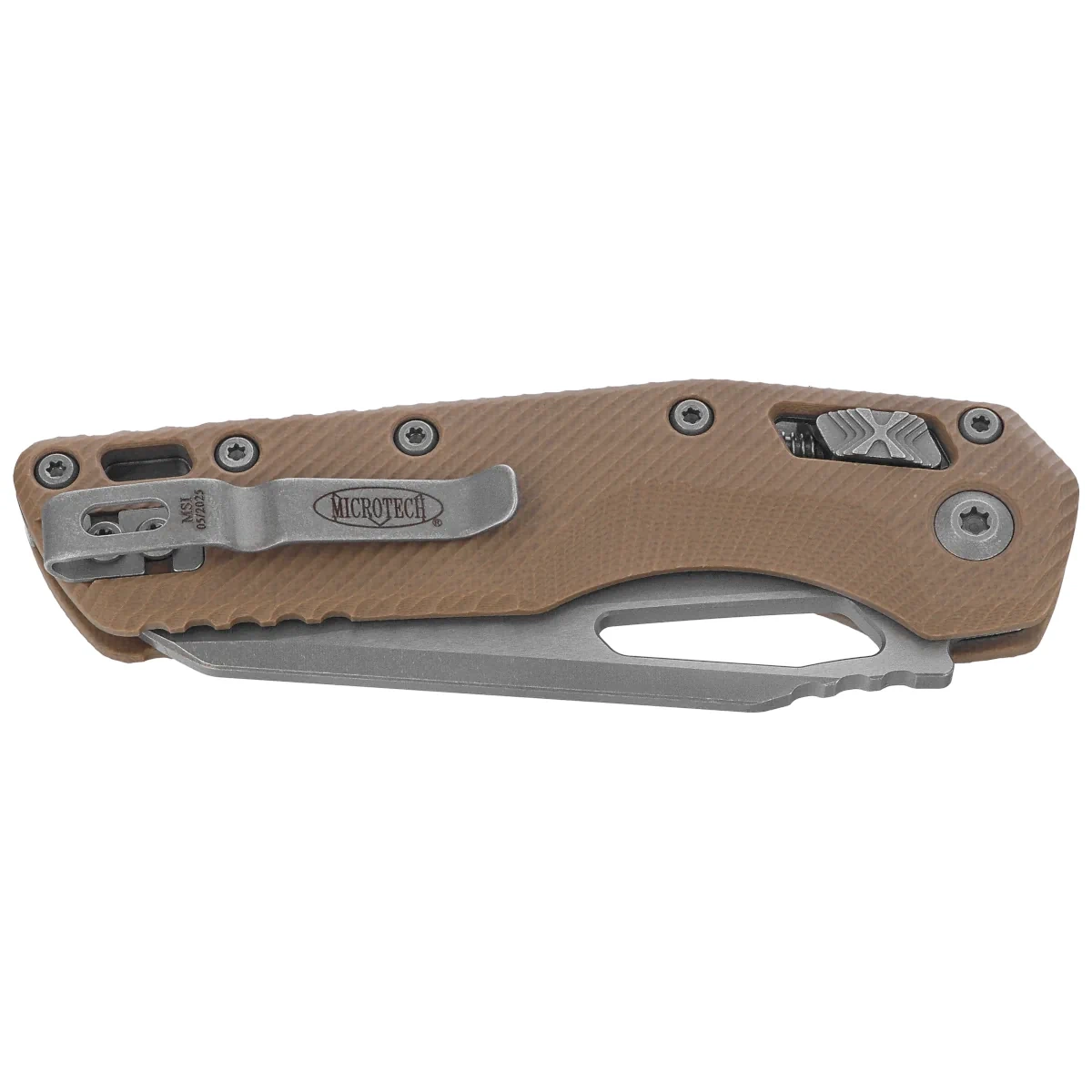 • MSI S/E Tan Fluted G10, Apocalyptic strong folding knife with intuitive RAM-Lok. Superior M390MK blade steel, the result of collaboration between Microtech and Bohler engineers. Ergonomic G10 handle. Designed by Anthony Marfione of Microtech!