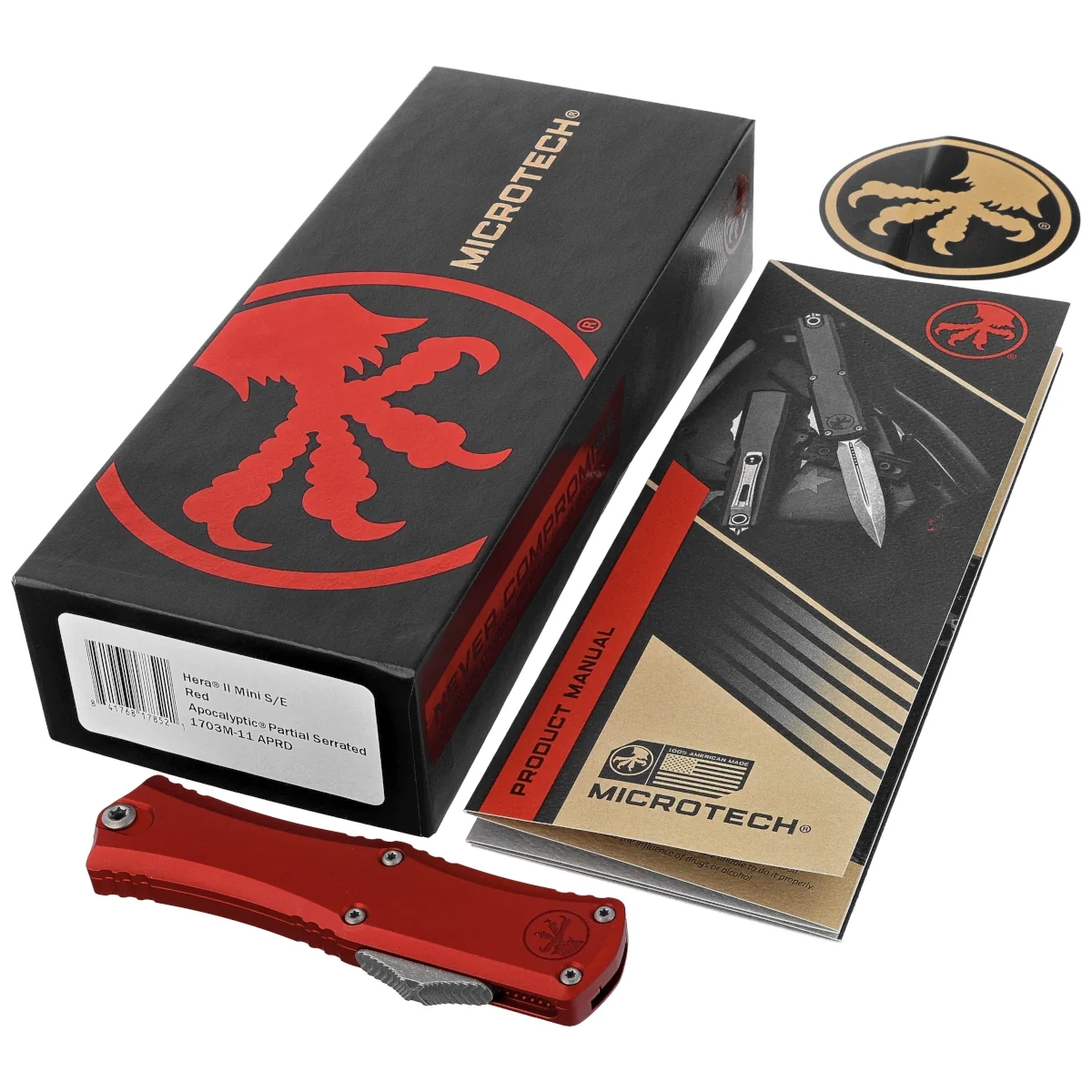 • Hera II Mini S/E Red Aluminum, Apocalyptic P/S compact version of one of the best OTF automatic knives. Convenient to carry, while retaining the power of larger models. Designed by Anthony Marfione owner of Microtech Knives.