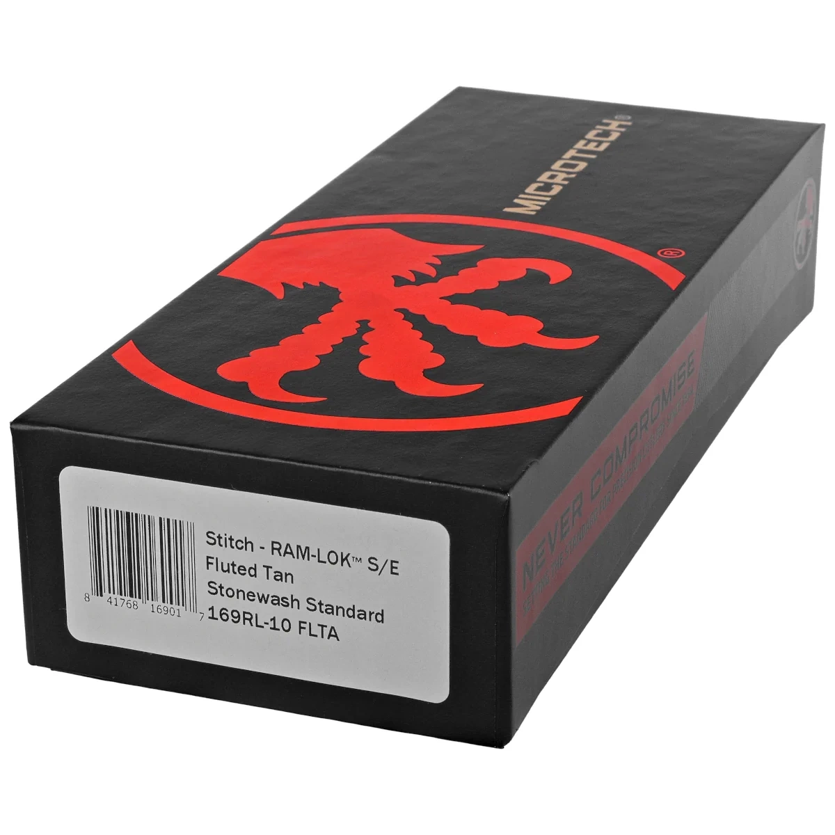 - Stitch Ram-Lok S/E Fluted Tan Aluminum, Stonewashed manual version of the popular design by Sebastijan Berenjie of Borka Blades and Microtech. Wide harpoon-shaped blade, superior materials and legendary workmanship from Microtech Knives
