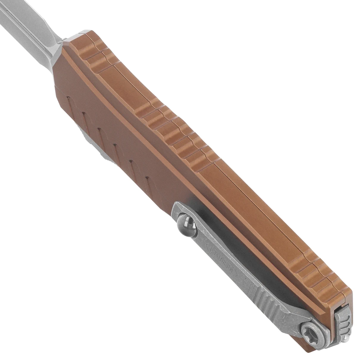 Microtech Cypher II D/E OTF Knife Tan Aluminium, Apocalyptic M390MK by Deryk Munroe and Tony Marfione (1242-10APTA)