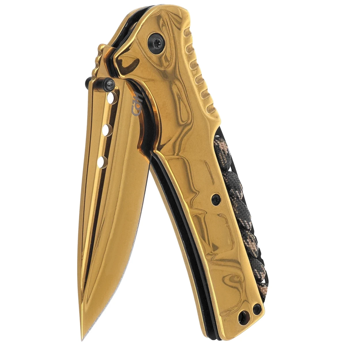 - Herbertz CJH Golden Steel, Golden - a folding EDC knife with a 3Cr13MoV stainless steel drop point blade and a uniform gold coating. Ergonomic steel handle and paracord included - style and practicality in one.