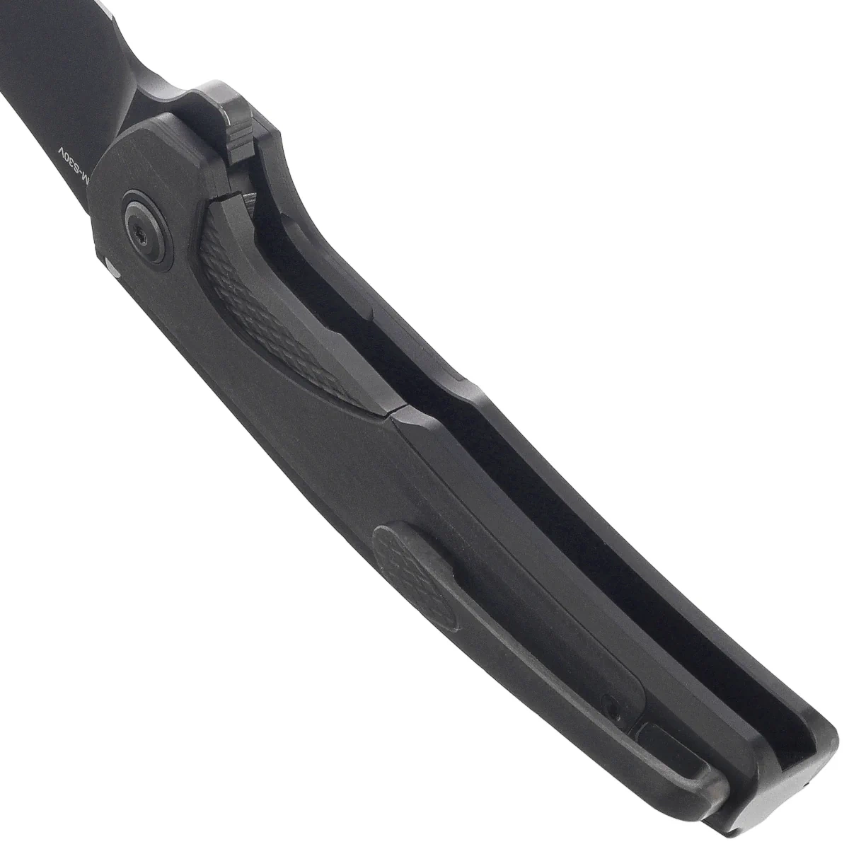 Blade - with a clip point profile allows precise maneuvering and penetration of the material, maintaining full edge control. The blade is made of CPM S30V steel for excellent sharpness retention and high wear resistance. The flat grind supports the cutting properties of the blade, while the DLC coating adds a tactical touch and minimizes the visibility of minor scratches. Ball bearing flipper mechanism allows for quick one-handed opening, and notching on the back increases grip stability.