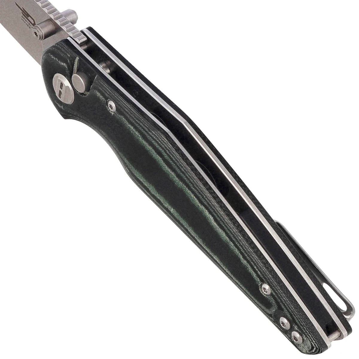 Snakebird Green Micarta, Stonewashed / Satin by Bestech Knives, is a proposal for users who expect harmony between form and function. The slender, dynamic silhouette of the knife was inspired by the flight of a bird, which is reflected in the distinctive line of the Blade and the consistent composition of design elements. Precisely selected finishes - stonewashed on the back and satin on the working planes - create a visual effect that emphasizes attention to detail. Blade is made of 14C28N stainless steel, known for its good balance between sharpness retention and ease of sharpening. The sheepsfoot profile provides excellent cutting control, especially where precision and safety are important. Ball bearings and a thumb stud allow the blade to be quickly unfolded, and an intuitive button lock guarantees safety during use. The Micarta composite Handle is set on steel liners, which translates into durability and low weight. Milling, deep carry clip and textured surface make this model comfortable, durable and refined in every detail. Snakebird is an EDC folder that will satisfy both practical users and collectors who appreciate modern design.