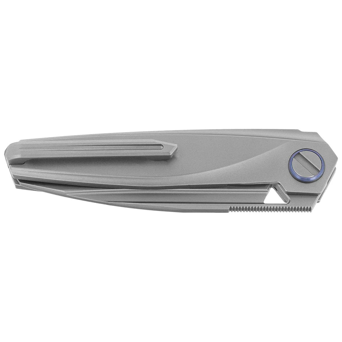 The Baidi T Titanium/Green Carbon Fiber, Bead Blasted from Rike Knife is a design created for users who want uncompromising precision and ergonomics tailored for everyday use. The centerpiece of the design is a 6AL4V titanium skeleton, providing excellent rigidity with minimal weight. The asymmetrical grips decorated with a Green Carbon Fiber inlay not only enriches the styling, but also strengthens the grip and reduces the weight of the design. Blade with Tanto profile is made of Böhler M390 powder steel, famous for its exceptional edge durability and corrosion resistance. A full flat grind ensures smooth cutting and excellent penetration properties, while a bead blasted finish reduces reflections and increases resistance to micro-scratching - especially in field or workshop conditions. The opening mechanism is based on a front flipper and ball bearings, which ensures immediate blade response and smooth, play-free operation. A liner lock with easy access is responsible for locking. The deep carry clip allows the knife to be carried discreetly in the pocket, without affecting ergonomics. Baidi T is a model for people who expect durability, functionality and superior work culture from a tool.