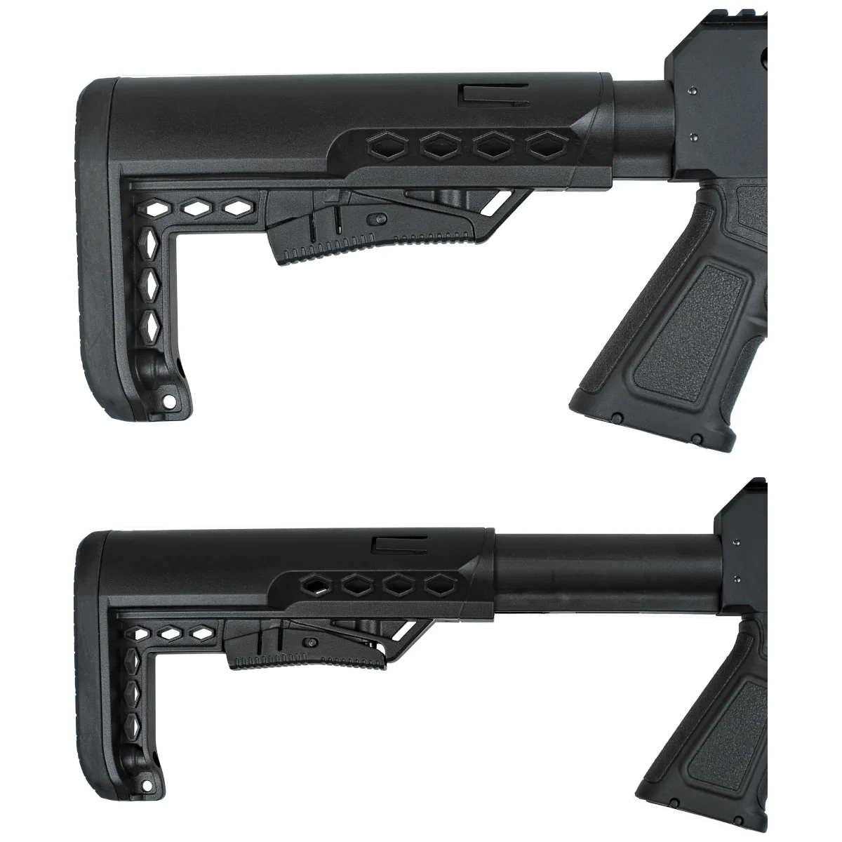 Stocktactical with a pistol grip and AR-15 style telescopic buttstock, designed for optimal shouldering and precise aiming. Finished with a rubber recoil pad. The rubberized pistol grip ensures a secure hold, while its lightweight construction of 1.8 kg offers excellent handling comfort.