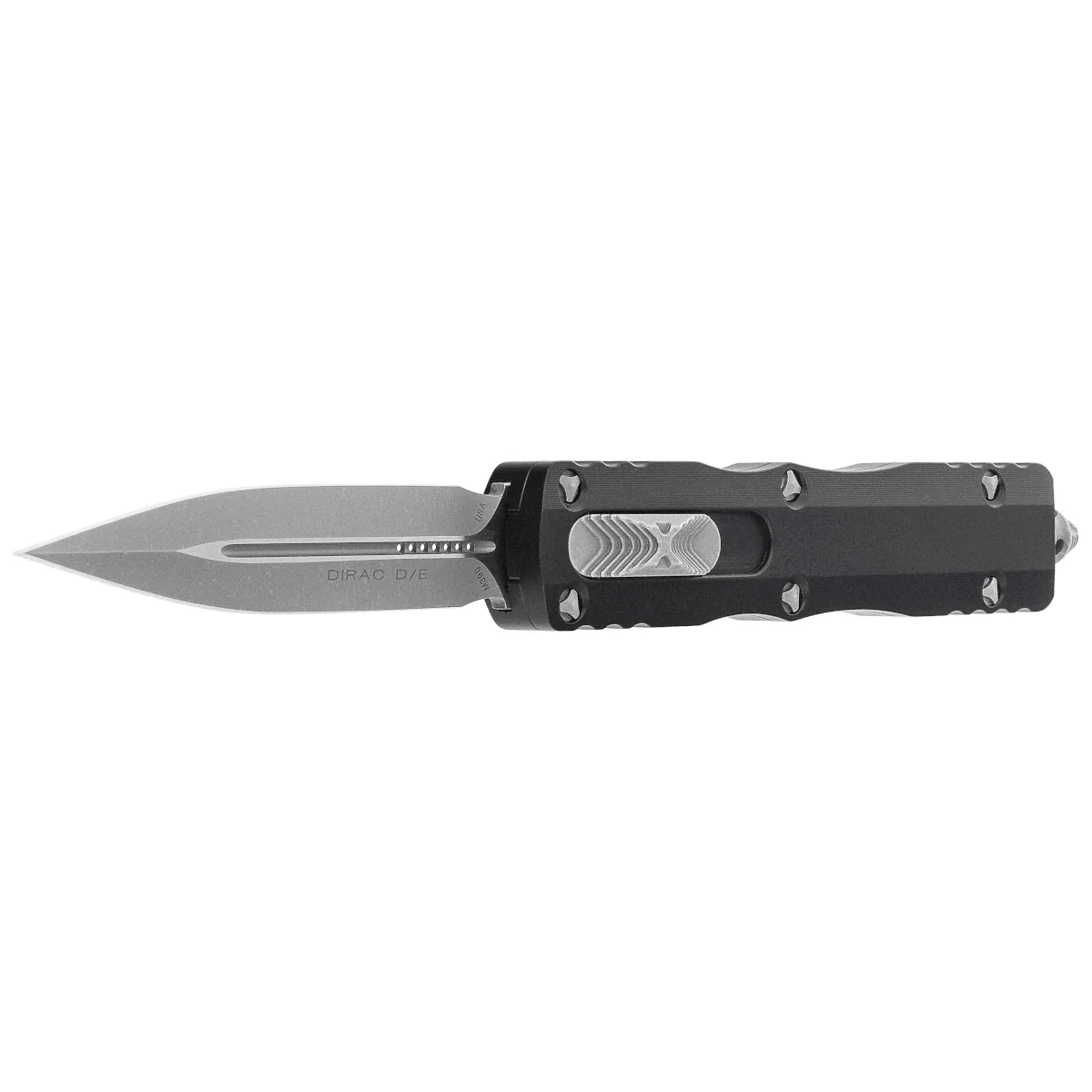 - Dirac D/E Black Aluminum, Satin is a compact OTF automatic knife from the Dirac series. Operating in D/A mode, it features a hell of a fast blade extension mechanism. Slider button on the side of the handle. Designed by Tony Marfione of Microtech Knives