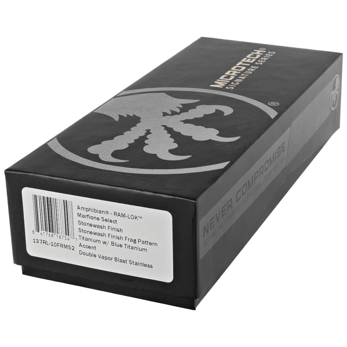 - Marfione Select Amphibian Ram-Lok S/E Stonewashed Frag Pattern Titanium, Stonewashed reissue of folding knife with intuitive RAM-Lock. Superior M390MK blade steel, the result of collaboration between Microtech and Bohler engineers. Titanium handle.