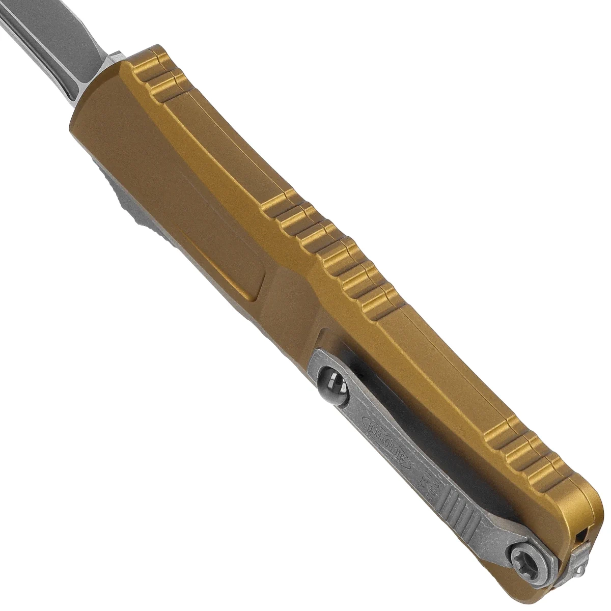 Handle - made with excellent precision in 3D technology on CNC milling machines, from Mil-Spec coated aluminum 6061-T6. The surface texture of the Handle and the deep notches (jimping) on it make the knife non-slip in the hand during use. The slim profile and milled two-position (right/left) solid deep-carry clip allow the knife to be carried discreetly in the pocket, in tip-down (blade tip down) position. Equipped with a smooth rollerball, which allows the knife to slide easily into the pocket without damaging the pocket edges. The clip bears the Microtech logo and production date. The Handle is finished with glass breaker, a steel triangle, into which a tungsten carbide ball has been pressed.