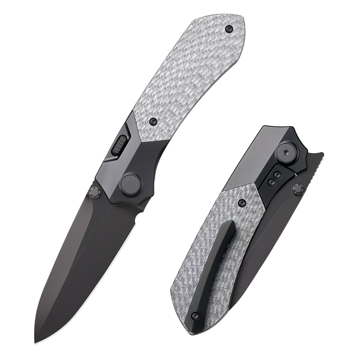 • RT-Meteor RTPT-BD Black DLC Titanium/Gray Carbon Fiber, Black DLC - premium folding knife with M390 steel Blade and Titanium type Handle enhanced with Carbon Fiber composite inlays. Technical precision, modern aesthetics and maximum durability.