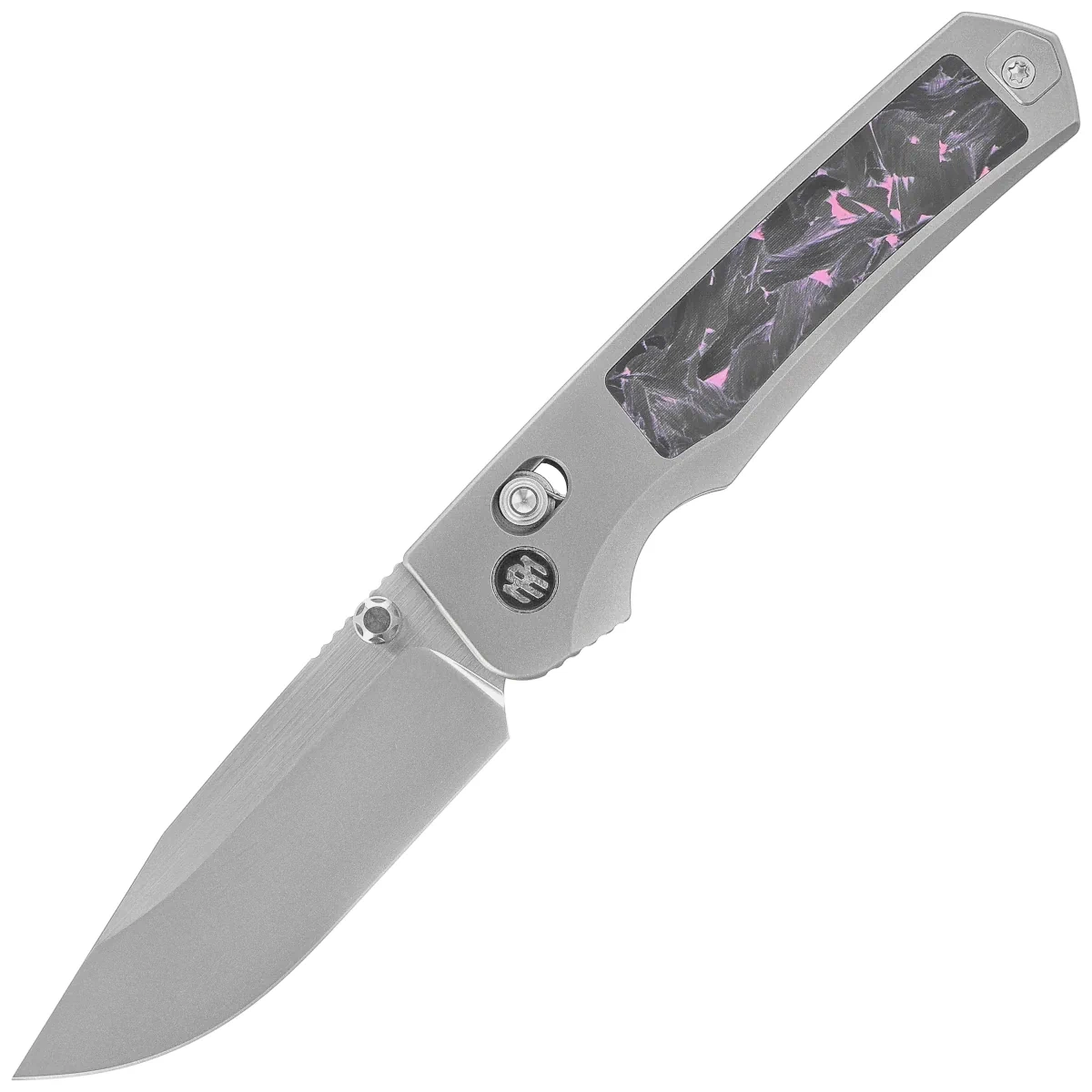 - Aurora Gray Titanium/Carbon Fiber, Manual Fine Grinding Satin/Pearlescent, elegant folding knife with titanium Handle and carbon fiber inlays. Blade made of M390 steel finished by hand, axis lock, ceramic bearings.