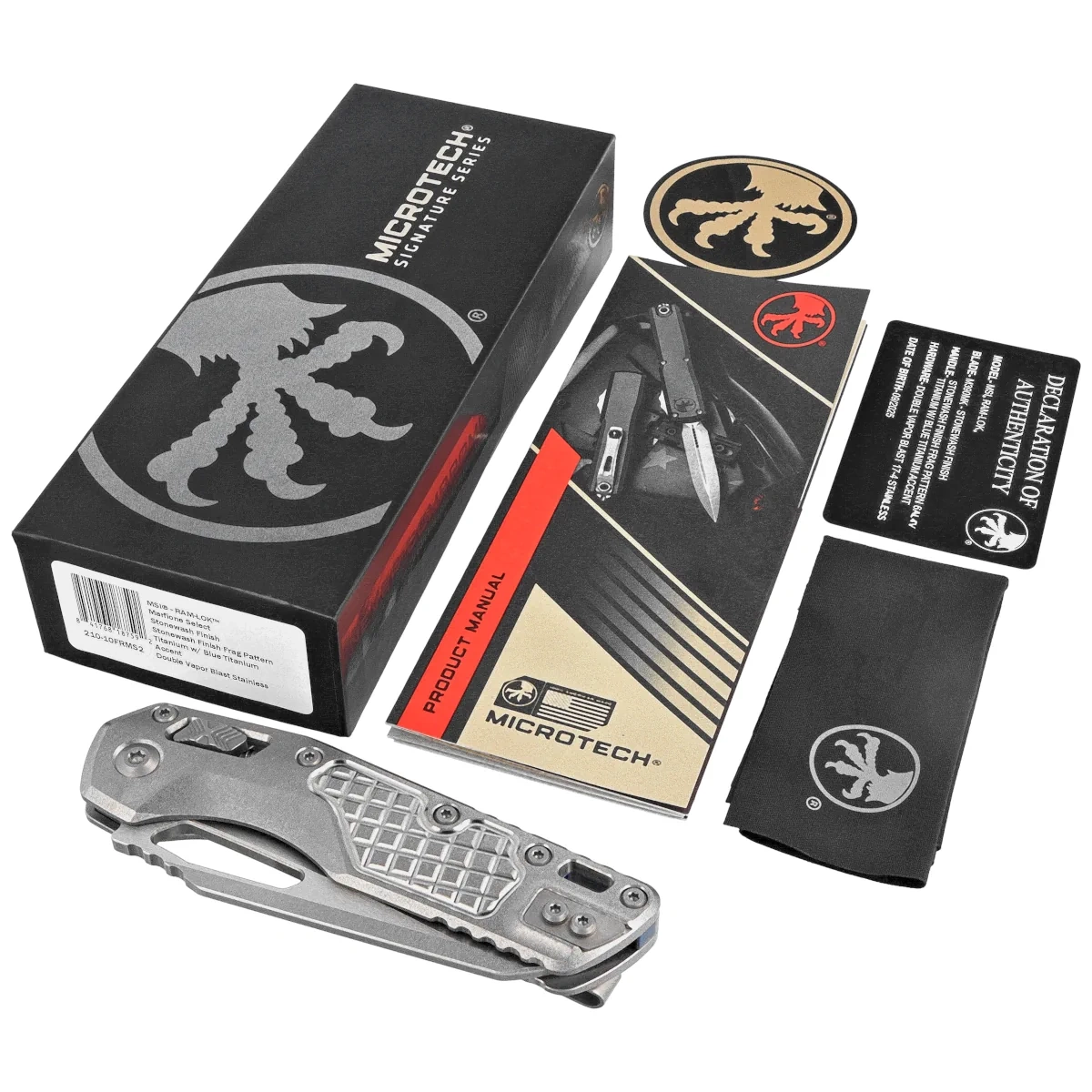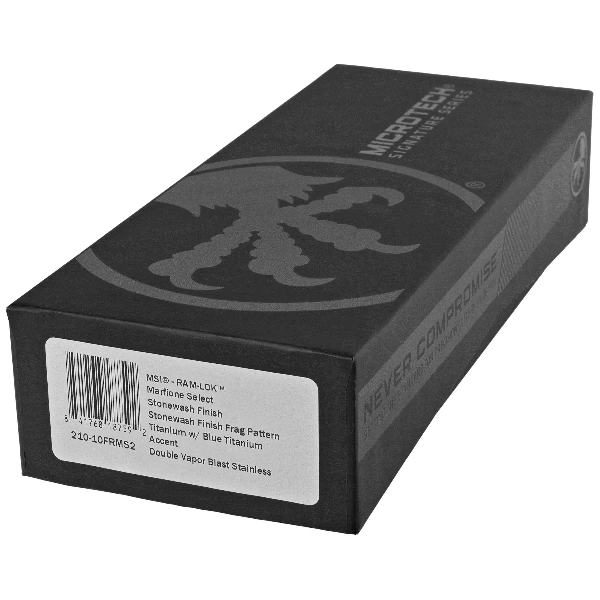 Microtech MSI S/E Ram-Lok Knife Marfione Select Frag Titanium, Blue HW, Stonewashed M390MK by Tony Marfione (210-10FRMS2)