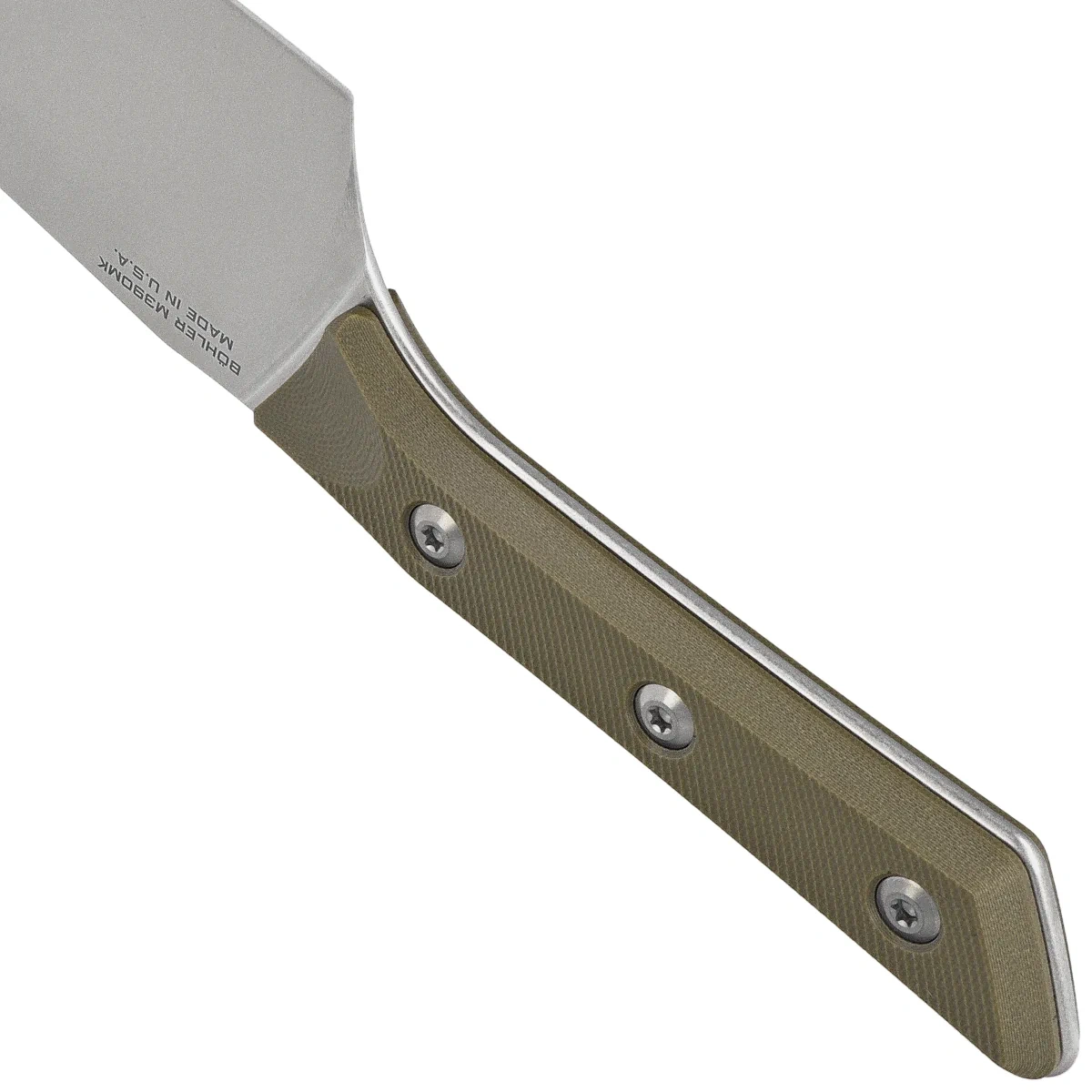 Handle - made of G10 composite is a combination of strength, lightness and ergonomics, tailored to the needs of intensive work in the kitchen. Its simple, functional shape and subtle surface texture ensure a secure grip in any situation - even with wet hands or in high humidity conditions. Mounting on three torx screws increases the rigidity of the design and facilitates access to the interior in case of cleaning. The contoured back of the Handle allows for natural hand guidance, minimizing fatigue and increasing blade control. Handle combines modern design with utilitarian severity, characteristic of Microtech designs.