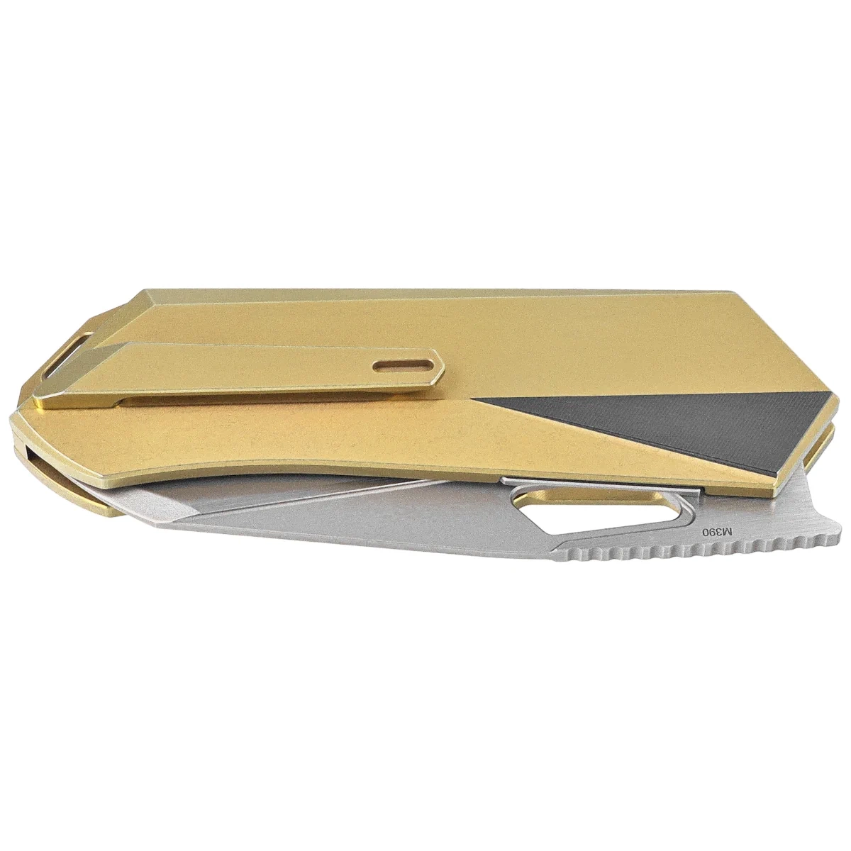 - RT-Woodpecker Gold Titanium, Hand Grinding Pearlescent masterpiece of engineering, a folder designed for easy disassembly without expert tools. Premium Böhler M390 steel, comfortable titanium handle with Liner Lock mechanism.