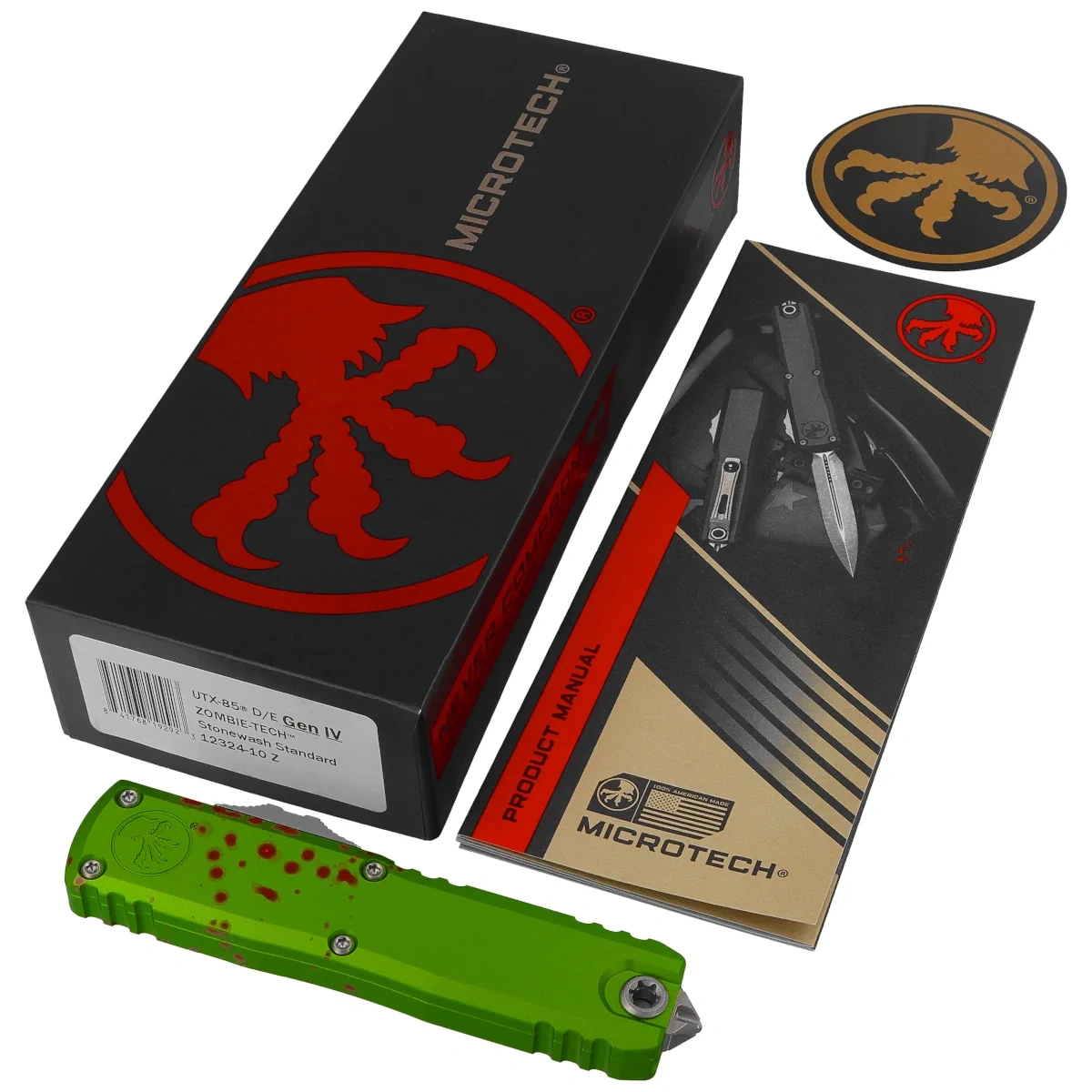 Microtech UTX-85 Gen IV D/E OTF Knife Zombie Aluminum, Stonewashed M390MK by Tony Marfione (12324-10Z)