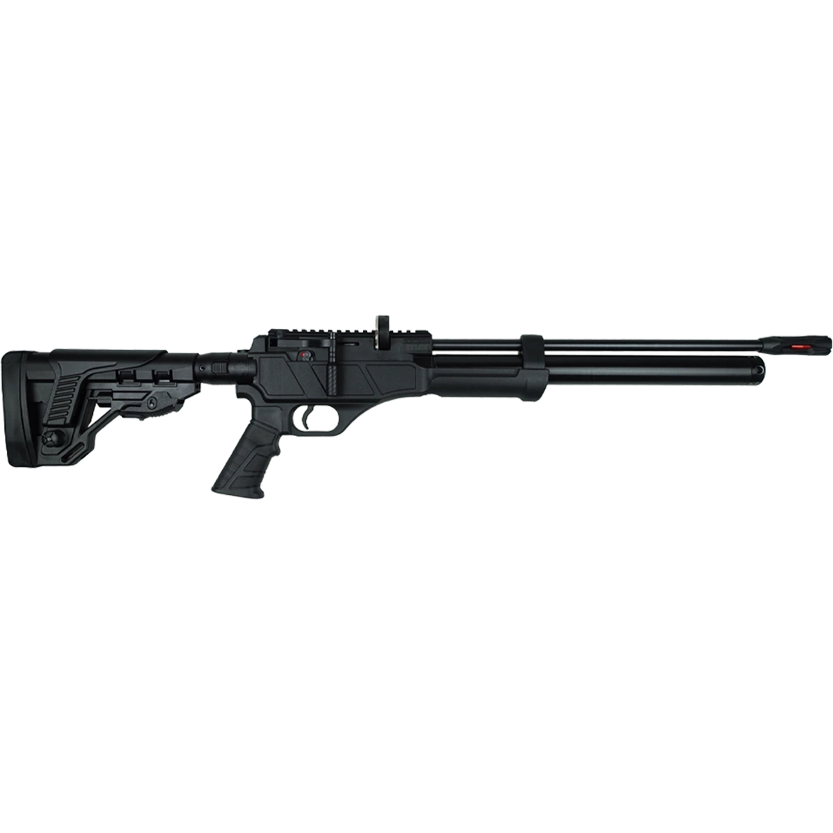 - Hatsan Zylox – the new generation of tactical PCP air rifles. Ergonomic pistol grip, a foldable AR-15-style telescopic stock, and a biathlon-style side lever. 215cc air cylinder. Comes with two magazines and air stripper. Available in 4.5, 5.5, and 6.35mm