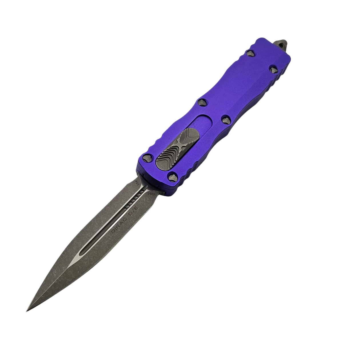 - Dirac D/E Purple Aluminum, Apocalyptic is a compact OTF automatic knife from the Dirac series. Operating in D/A mode, it features a hell of a fast blade extension mechanism. Slider button on the side of the handle. Designed by Tony Marfione of Microtech.